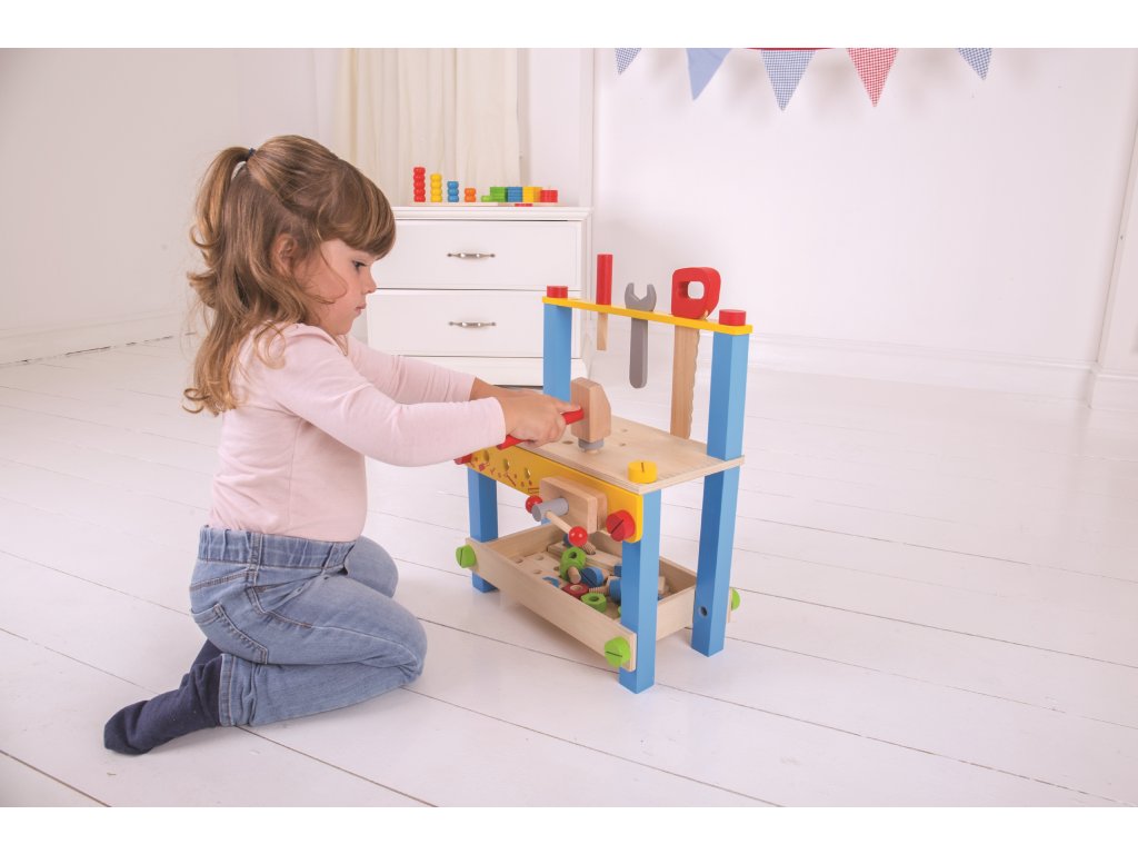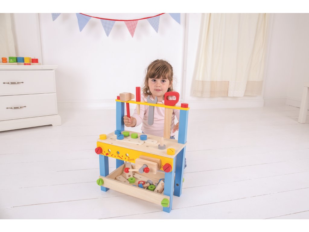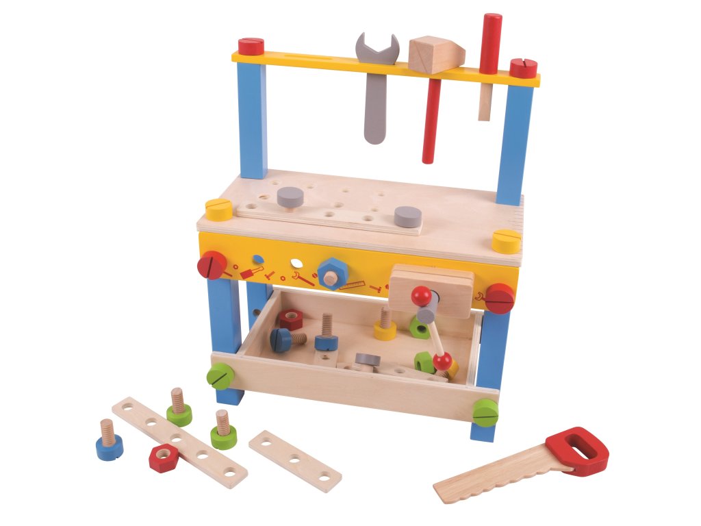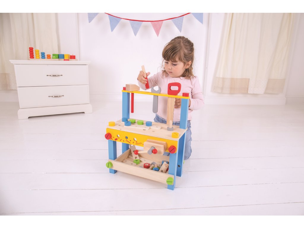 Tento ponk je přesně to, co každý mladý řemeslník potřebuje. Stůl na nářadí je robustní a obsahuje spoustu dřevěných prvků a nástrojů, které inspirují děti k hodinám nápadité hry. Ponk obsahuje svorku, klíč, matice a šrouby, šroubovák a další. Mladí stavitelé se budou moci naučit základní pojmy nářadí i to, jak fungují. Podporuje koordinaci ruka - oko, motorické dovednosti a rozvíjí kreativitu. Vyžaduje montáž dospělých. Vyrobeno z vysoce kvalitních, zodpovědně získaných materiálů. Splňuje aktuální evropské bezpečnostní normy. Skládá se z 26 hracích prvků. Hlavní vlastnosti: robustní konstrukceobsahuje 26 hracích prvkůpodporuje koordinaci ruka-okopodporuje motorické dovednosti a rozvíjí kreativituvyžaduje montáž dospělých