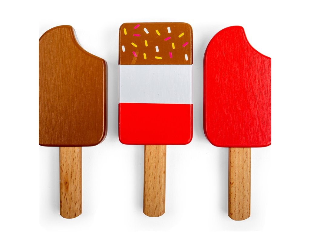 Cena je uvedena za 1 kus. Při objednávání můžete v připomínce objednávky požádat o konkrétní motiv, pokud je skladem, rádi Vám vyhovíme. V opačném případě zasíláme náhodně. Krásné nanuky, které nikdy neroztají. K výběru je zde s jahodovou, čokoládovou nebo pestře barevnou polevou. BigJigs je velký fanoušek zdravé výživy a jaká by byla lepší cesta učit děti o zdravé výživě, než pomocí hraček z našeho sortimentu? Dřevěné hrací jídlo je ideální k tomu, aby se vaše dítě dozvědělo o důležitosti zdravé a vyvážené stravy. A také o tom, odkud naše jídlo pochází a jak ho připravujeme. Hlavní vlastnosti: podporuje kreativní a nápadité hranívyrobeno z vysoce kvalitních, zodpovědně získaných materiálůsplňuje aktuální evropské bezpečnostní normy