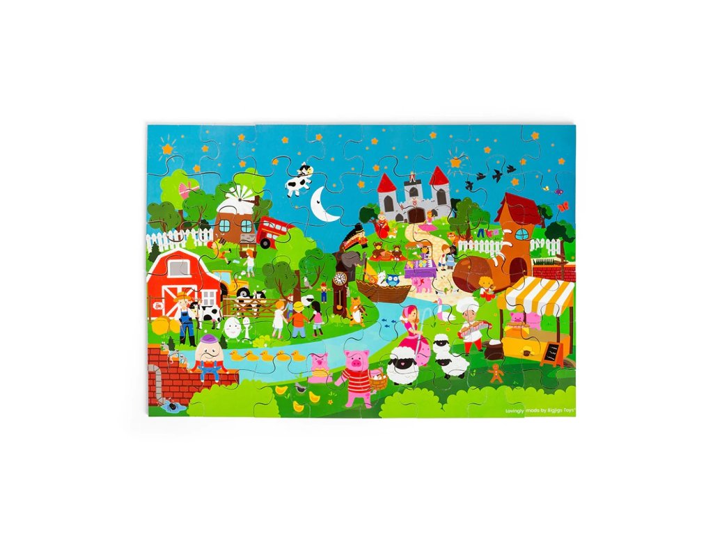 Tohle úžasné podlahové puzzle nabízí plno zábavy dětem i rodičům. Jednotlivé kusy puzzlíků díky svým rozměrům dobře padnou do dětské ruky a snadno se tak skládají dohromady. Pohádkové příběhy mohou být různé, rodičům i dětem se tak naskýtá nepřeberné množství pohádek podle fantazie. Děti získávají sociální dovednost, když vypráví, co která ilustrace představuje. Rozvíjí slovní zásobu, představivost, soustředění a jemnou motoriku. Vyrobeno z vysoce kvalitních a zodpovědně získaných materiálů, odpovídající současným evropským bezpečnostním normám. Hlavni vlastnosti: 48 dílůkrásné barevné zpracovánínekonečné množství pohádkových příběhůvhodné od 2 let