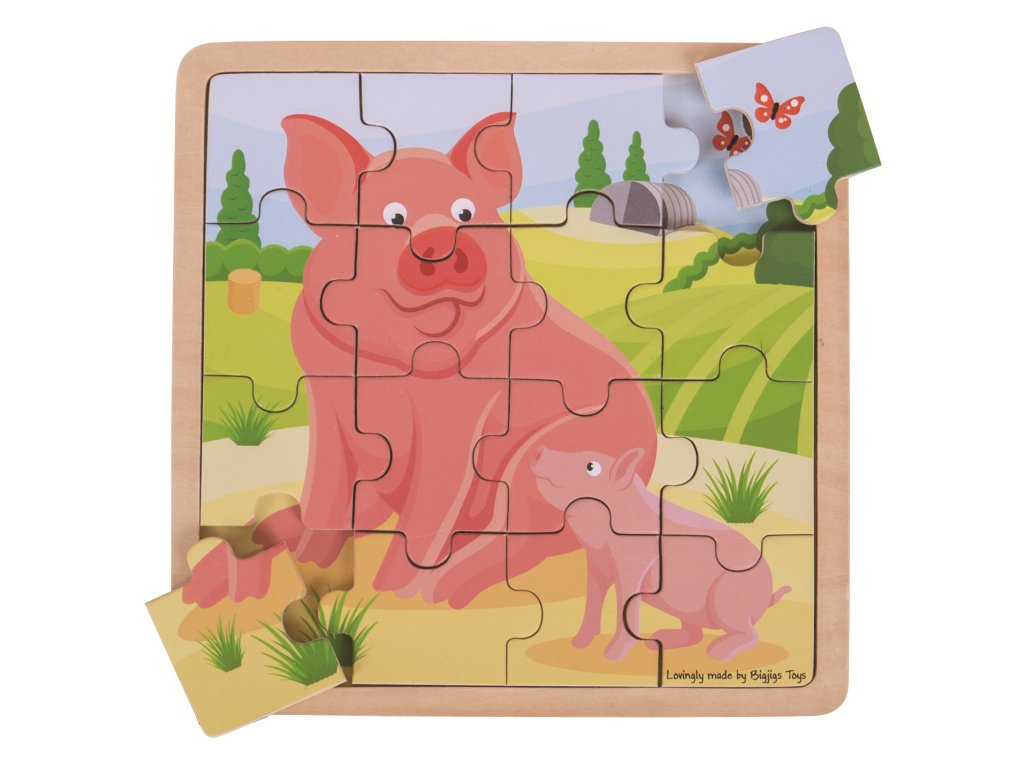 Malinké selátko se drží po boku své veliké prasečí maminky na jejich první společné procházce.16 dílků robustního puzzle se vkládá na podklad se stejným motivem, Vaše dítko tak bude mít složený obrázek během chvilky. Rozměry dílků jsou uzpůsobeny snadnému uchopení dětských rukou. Puzzle pomáhá rozvíjet slovní zásobu, fantazii, motoriku a soustředění. Složené puzzle je v rámečku, nedochází k posunutí nebo zničení obrázku. Vyrobeno z vysoce kvalitních, odpovědně získaných materiálů. Odpovídá současným evropským bezpečnostním normám. Hlavní vlastnosti: obsahuje 16 dílkůvelké dílky puzzlepomáhá rozvíjet slovní zásobu, fantazii, motoriku a soustředění