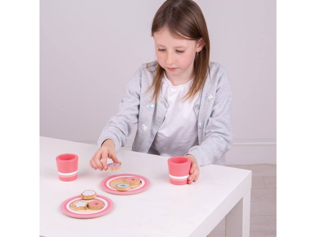 Dejte si lahodné mléko a sušenky nebo se podělte o sladkou pochoutku s kamarádem nebo rodinou. Tato nádherná dřevěná sada obsahuje 6 dřevěných sušenek, 2 talíře a 2 hrníčky. Skvělý způsob, jak inspirovat kreativní a nápadité hraní a skvělý doplněk do každé dřevěné kuchyňky. Rozvíjí obratnost a zlepšuje sociální dovednosti již od raného věku. Vyrobeno z vysoce kvalitních, zodpovědně získaných materiálů. Splňuje aktuální evropské bezpečnostní normy. Hlavní vlastnosti: obsahuje 6 dřevěných sušenek, 2 talíře a 2 hrníčkypodporuje kreativní a nápadité hranívyrobeno z vysoce kvalitních, zodpovědně získaných materiálů