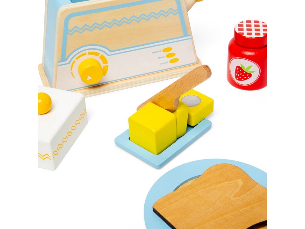 Snídaňový set je skvělá hračka pro děti, která přináší do jejich hraní zážitek z přípravy a servírování snídaně. Tato sada obsahuje vše potřebné pro simulaci snídaně - talíř, máslo, příborový nůž, džem a topinkovač. Je vyrobena z kvalitního dřeva, což zajišťuje odolnost a dlouhotrvající zábavu. Každá položka je detailně zpracována, což přispívá k realističnosti a autentičnosti. Podněcuje děti k simulaci různých scénářů a rolí během přípravy a podávání snídaně, což rozvíjí jejich kreativitu. Děti se učí spolupracovat, sdílet a komunikovat s ostatními během společenských situací, což také přispívá k rozvoji sociálního povědomí a empatie. Hlavní vlastnosti: podporuje rozvoj dětských dovedností a fantazie rozvoj sociálních dovedností a kreativityvyrobeno z vysoce kvalitních, zodpovědně získaných materiálů