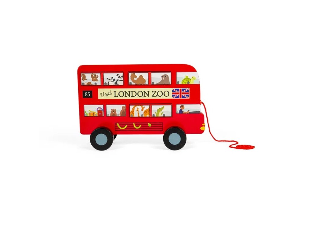 Podpořte Vaše dítě při jeho prvních krůčcích tahací hračkou na provázku! Jedná se o klasický červený patrový autobus přepravující cestující po Londýně, jen s tím rozdílem, že tento jede do londýnské zoo a jeho pasažéři jsou zvířátka! Autobus má 6 odnímatelných oken, takže si děti mohou určovat, jak budou cestující v autobuse sedět. Hračka je ideální pro nejmenší děti, které se učí chodit, stane se jejich společníkem při jejich prvním krůčcích. Manipulace a vkládání odnímatelných oken také rozvíjí jemnou motoriku a koordinaci ruka-oko. Tato ekologická dřevěná tahací hračka je vyrobena z prvotřídního a udržitelného dřeva s certifikací FSC® a nabarvena netoxickými barvami a laky. Splňuje aktuální evropské bezpečnostní normy. Hlavní vlastnosti: 6 vkládacích oken s obrázky zvířatvyrobeno ze dřeva s certifikací FSC®zlepšuje jemnou motoriku a koordinaci ruka-okodoprovází při prvních krůčcíchvhodné od 12 měsíců věku Značka a certifikát FSC® (Forest Stewardship Council) zaručuje, že dřevo, ze kterého byl produkt vyroben, nebylo vytěženo nelegálně a pochází z lesů obhospodařovaných šetrným či přírodě blízkým způsobem, ve kterém jsou dodržovány přísné environmentální a sociální požadavky. Značka FSC® na výrobku znamená, že svým nákupem pomáháte chránit lesy a podporujete šetrné, odpovědné či přírodě blízké hospodaření, díky kterému jsou naše lesy stabilnější, zdravější, mají přirozenou druhovou skladbu a lépe odolávají negativním následkům klimatických změn.