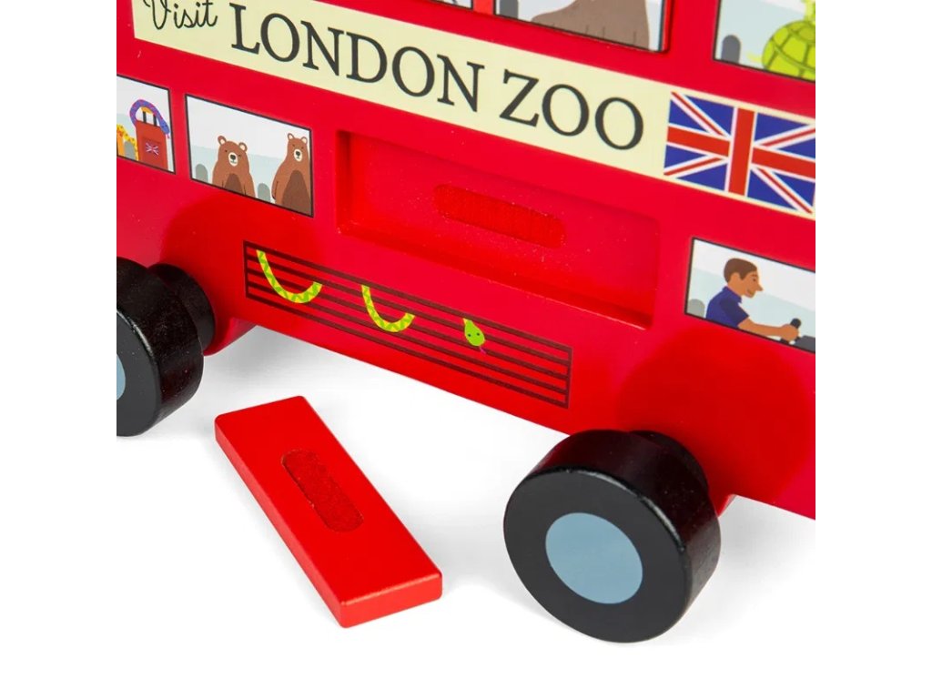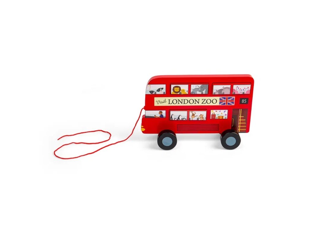 Podpořte Vaše dítě při jeho prvních krůčcích tahací hračkou na provázku! Jedná se o klasický červený patrový autobus přepravující cestující po Londýně, jen s tím rozdílem, že tento jede do londýnské zoo a jeho pasažéři jsou zvířátka! Autobus má 6 odnímatelných oken, takže si děti mohou určovat, jak budou cestující v autobuse sedět. Hračka je ideální pro nejmenší děti, které se učí chodit, stane se jejich společníkem při jejich prvním krůčcích. Manipulace a vkládání odnímatelných oken také rozvíjí jemnou motoriku a koordinaci ruka-oko. Tato ekologická dřevěná tahací hračka je vyrobena z prvotřídního a udržitelného dřeva s certifikací FSC® a nabarvena netoxickými barvami a laky. Splňuje aktuální evropské bezpečnostní normy. Hlavní vlastnosti: 6 vkládacích oken s obrázky zvířatvyrobeno ze dřeva s certifikací FSC®zlepšuje jemnou motoriku a koordinaci ruka-okodoprovází při prvních krůčcíchvhodné od 12 měsíců věku Značka a certifikát FSC® (Forest Stewardship Council) zaručuje, že dřevo, ze kterého byl produkt vyroben, nebylo vytěženo nelegálně a pochází z lesů obhospodařovaných šetrným či přírodě blízkým způsobem, ve kterém jsou dodržovány přísné environmentální a sociální požadavky. Značka FSC® na výrobku znamená, že svým nákupem pomáháte chránit lesy a podporujete šetrné, odpovědné či přírodě blízké hospodaření, díky kterému jsou naše lesy stabilnější, zdravější, mají přirozenou druhovou skladbu a lépe odolávají negativním následkům klimatických změn.