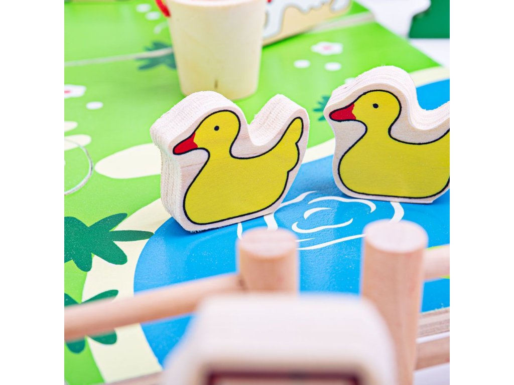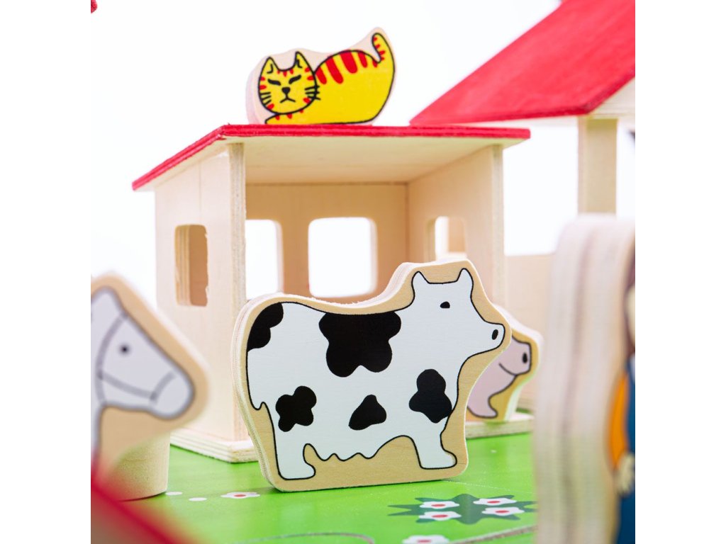 Malí farmáři si mohou vytvořit své vlastní kreativní scény na této velké dřevěné farmě. Obsahuje stáj a větrný mlýn, zeleninový záhon, psí boudu, spoustu zvířat, jezírko a také nářadí a pohyblivé oplocení. Jasné zářivé barvy jsou ideální pro stimulaci představivosti; tato zábavná farmářská hračka poskytne vašemu děťátku hodiny zábavy při objevování venkovského života. Hladké robustní hrací figurky mají ideální velikost pro malé ručičky k uchopení, zkoumání a výměně. Farma je skvělý způsob, jak naučit děti o hospodářských zvířatech, kde žijí a jak se o ně starat. Podporuje kreativní a nápaditou hru. Rozvíjí koordinaci pohybů, jemnou motoriku a zručnost. Vyrobeno z vysoce kvalitních, zodpovědně získaných materiálů. Splňuje aktuální evropské bezpečnostní normy. Hlavní vlastnosti: 48 hracích postaviček a doplňkůfunkční prvky stájeideální pro podporu koordinace a představivostivelké dílky ideální pro dětské ručičkyvyrobeno z vysoce kvalitních, zodpovědně získaných materiálů
