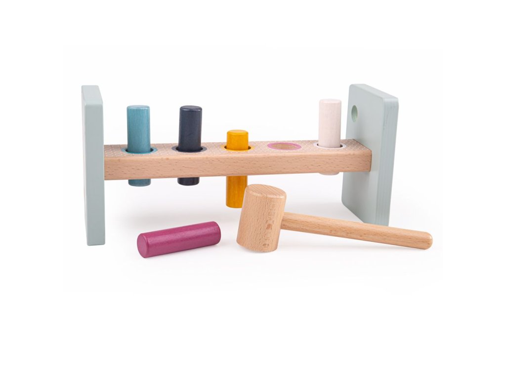 Děti se mohou při zatloukání barevných kolíků naučit rozpoznávat barvy. Po zatlučení všech stačí hračku otočit a mohou začít znovu! Ideální hra pro rozvoj koordinace ruka-oko a dovednost řešení problémů.Tato zatloukačka má zaoblené hrany pro bezpečnost dětí, také dobře uchopitelné kladivo. S dřevěnou hračkou děti získají sebejistotu.Hračka je vyrobena ze 100% FSC dřeva, které bylo získáno tím nejetičtějším způsobem. Odpovídá evropským bezpečnostním standardům, malováno netoxickými barvami, které jsou bezpečné pro děti. Hlavní vlastnosti: skládá se ze 7 dílků100% FSC dřevorozvíjí koordinaci ruka-oko Značka a certifikát FSC® (Forest Stewardship Council) zaručuje, že dřevo, ze kterého byl produkt vyroben, nebylo vytěženo nelegálně a pochází z lesů obhospodařovaných šetrným či přírodě blízkým způsobem, ve kterém jsou dodržovány přísné environmentální a sociální požadavky. Značka FSC® na výrobku znamená, že svým nákupem pomáháte chránit lesy a podporujete šetrné, odpovědné či přírodě blízké hospodaření, díky kterému jsou naše lesy stabilnější, zdravější, mají přirozenou druhovou skladbu a lépe odolávají negativním následkům klimatických změn.