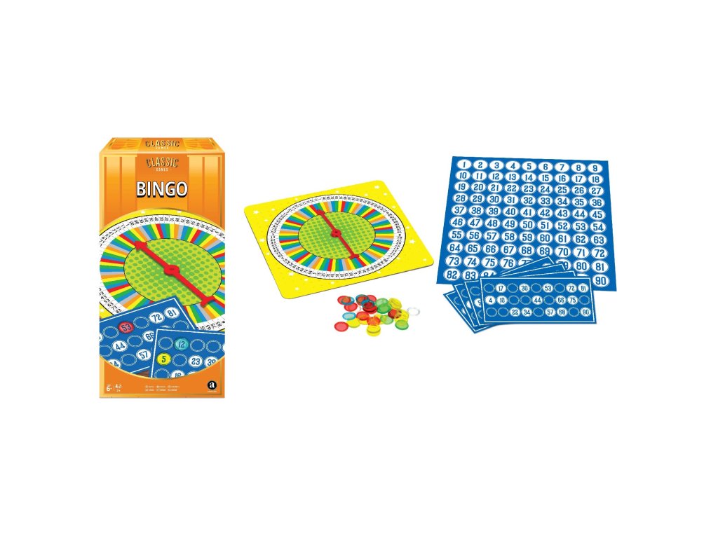 Bingo je po generace jednou z nejpopulárnějších her na světě – jeho historie sahá až do Itálie ve 30. letech 16. století. Vznikla z tradiční loterijní hry Il Giuoco del Lotto dItalia. Stejně jako v moderním bingu volající vyvolával čísla jedno po druhém vybíráním číselných žetonů nebo karet z váčku (krabice) a hráči doufali, že jako první dokončí svou kartu a vyhrají. Loto karty byly obdélníkového tvaru se 3 řadami a 9 sloupci napříč, celkem tedy 27 polí. Každé pole mělo číslo mezi 1-90 a hráč, který dokončil řadu čísel jako první, zvítezil. Z Itálie se hra stěhovala do Francie, kde si ji oblíbila francouzská aristokracie pod názvem Le Lotto. Do Ameriky se hra dostala ve 20. letech 20. století pod názvem Beano, toto slovo hráči zvolali, když dokončili řadu na své kartě. Obchodní cestující Edwin S. Lowe se sídlem v NY poté narazil na tuto hru na karnevalu v Geovrgii a byl tak ohromen, že se rozhodl vyrobit vlastní verzi s použitím gumového číslovacího razítka, kartonu a sušených fazolí. Během testovacích her se svými přáteli jeden vítěz po výherní kombinaci omylem zavolal bingo místo beano a tak vzniklo nové jméno, které zůstalo zachováno dodnes. Podrobný návod v Českém jazyce uvnitř! Obsah: 1 ruleta 150 krycích žetonů (více barev) 12 kartiček Bingo 1 kontrolní karta a návod k použití (pro 2 a více hráčů) Varování: Nevhodné pro děti do 3 let. Doporučeno 6+ Nebezpečí spolknutí nebo vdechnutí malých částí. Odstraňte obal, než začnete hračku používat. V případě igelitového obalu hrozí udušení dítěte. Upozornění: Obal uschovejte pro případnou potřebu. Barvy a detaily výrobku se mohou lišit od vyobrazení na obalu.