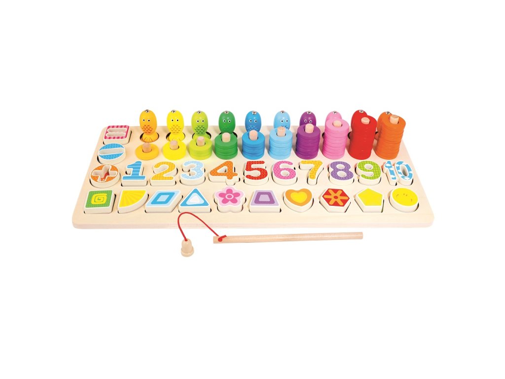 Dřevěná multifunkční edukativní hra, 90 ks. ,,Sbírka her‘‘ se všemi možnými vymoženostmi pro probuzení kreativity. Dítě se naučí rozpoznávat čísla, tvary a barvy. Hra je ideální pro koordinaci motoriky a pro trénování a posilování logického myšlení. Každé dítě si najde něco, co ho při hře bude bavit. Bude to snad rybaření, skládání čísel či stohování kroužků na sebe? Hra je vyvinuta s cílem podpořit zájem nejmenších o učení a učení přeměnit na zábavu. Všechny části jsou snadno uchopitelné, a proto jsou ideální pro malé dětské ruce. Vhodné pro děti od 3 let. Varování! U dětí do 3 let používat pouze pod dohledem dospělé osoby. Hlavní vlastnosti: obsahuje 90 ksmultifunkční hrapodporuje kreativituideální pro koordinaci motoriky o posílení logického myšlenímění učení na zábavu