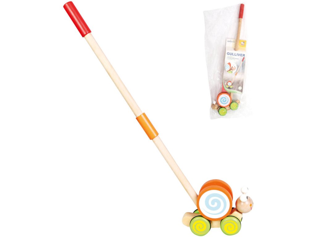 Jezdicí zvířátko šneček na tyči - veselý dřevěný jezdík pro nejmenší děti. Baleno v sáčku.