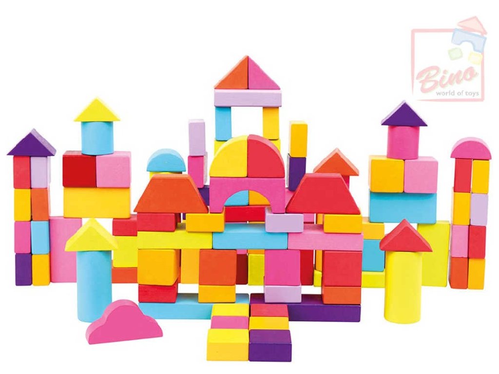 BINO DŘEVO Kostky set 100ks v kyblíku nové barvy *DŘEVĚNÉ HRAČKY*