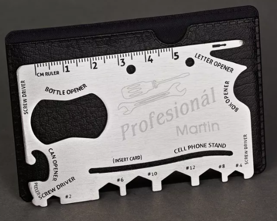 Nevíte co za dárek k 18 pro muže? V poslední době je nesmírně vtipný dárek pro muže k svátku, který je zároveň velmi originálním karta přežití. Což je vlastně kovová karta o velikosti kreditní karty, která je velmi univerzální a praktický dárek pro muže k svátku díky svým otvorům a zaoblením. Má mnoho funkcí jako otvírák na konzervy, nůž, šroubovák, škrabku, pilku, pravítko a mnoho dalších funkcí. Tahle karta je vhodný dárek pro cestovatele, ale i dárek pro muže jelikož nikdy nevíte, kdy se vám tahle vychytávka bude hodit.
