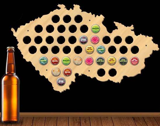 Mapa České republiky na pivní zátky je originální dárek pro pivaře