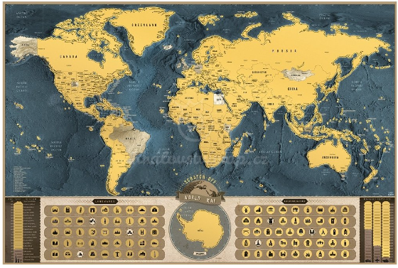 Stírací mapa světa patří mezi plakáty a velmi oblíbené dárky pro tatínky na Vánoce