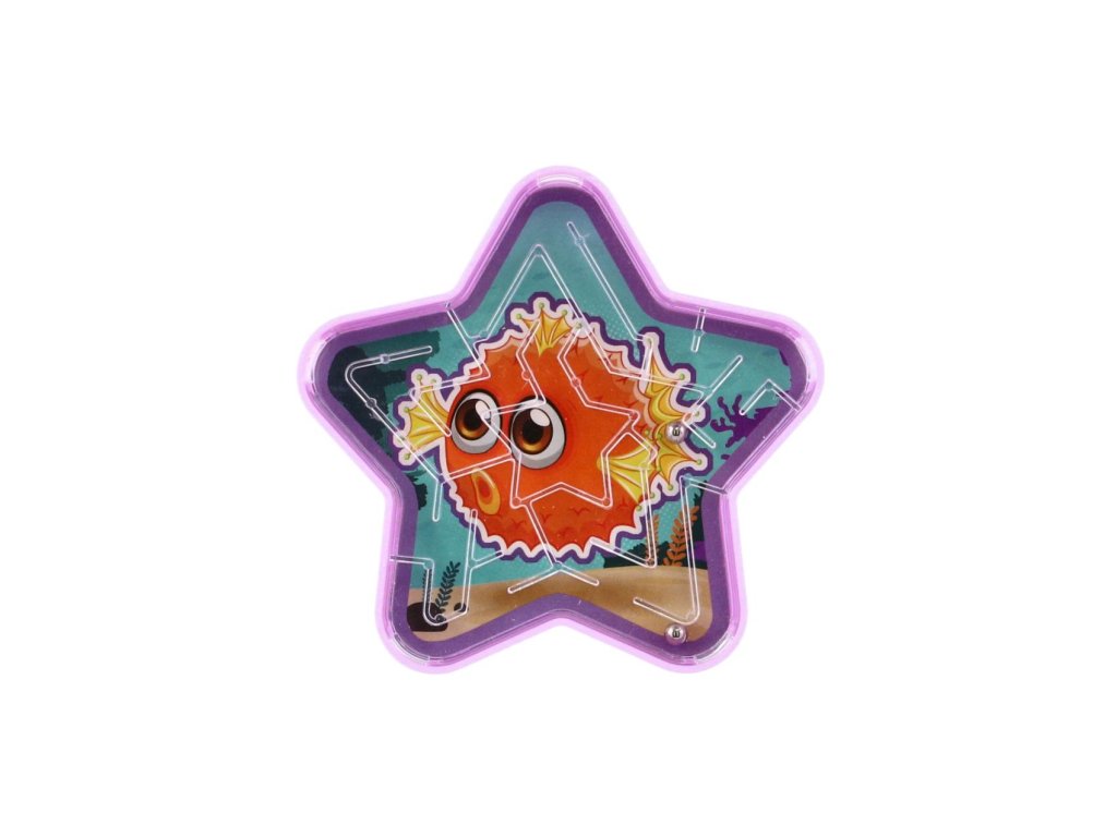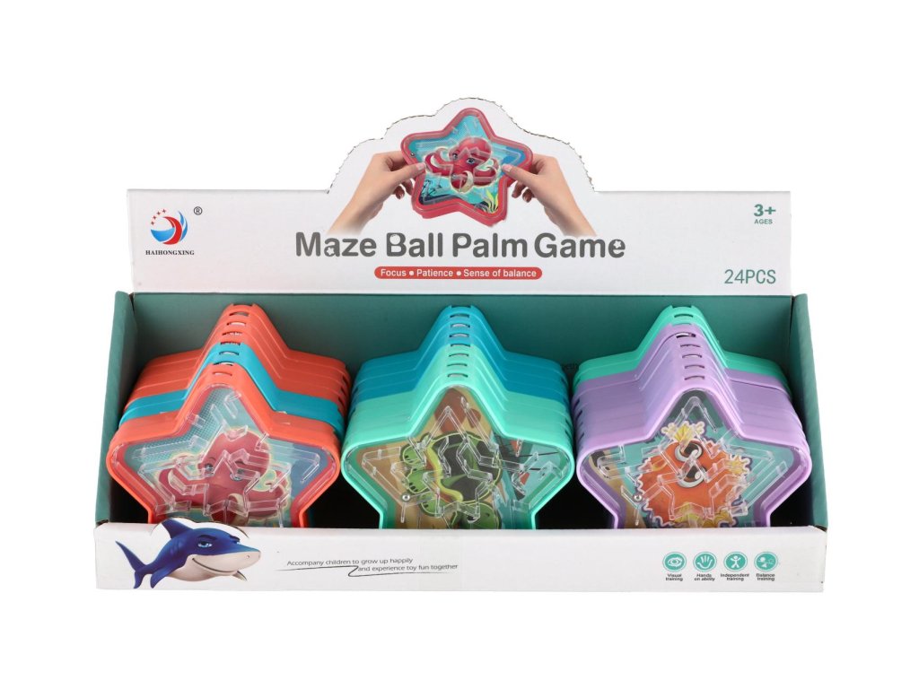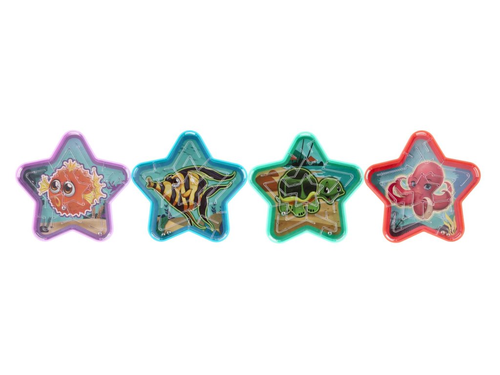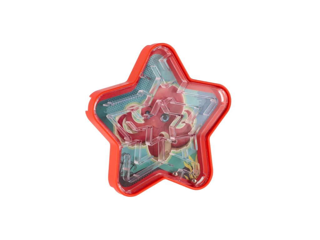 Bludiště hlavolam s kuličkou hvězda plast 9cm 4 barvy 24ks v boxu
