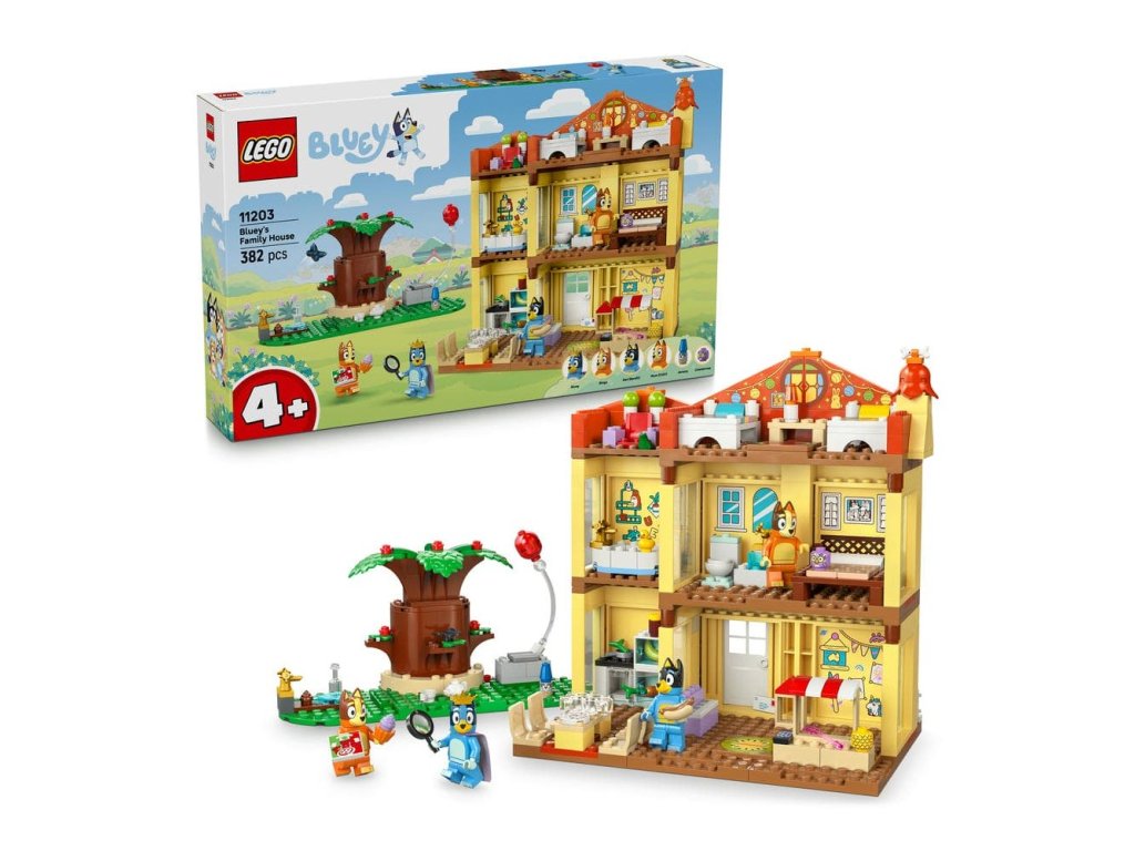 Kvalitní stavebnice Bluey a její rodinný dům (11203) je plná funkcí, hraček a postav z televizního seriálu Bluey, který inspiruje děti od 4 let k vymýšlení tvořivých her s Bluey a její rodinkou.