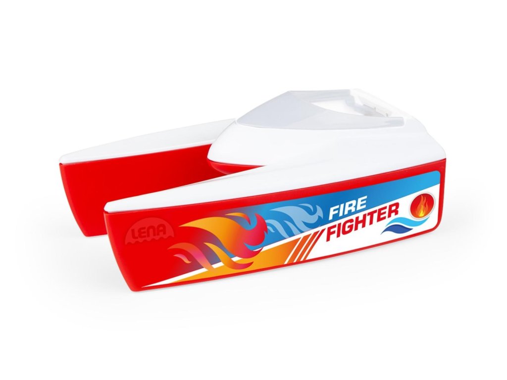 Hasičská loď ve stylu katamaránu. Vhodné pro hraní ve vaně. Velikost lodě 17 cm.