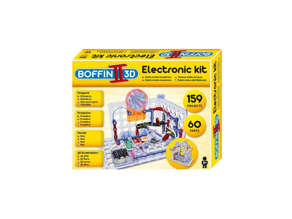 Se stavebnicí Boffin II 3D se dozvíte, jak se vytváří 3D efekty, sestavíte si projektor a maják. Stavebnice obsahuje 60 součástek, z nichž lze postavit projekty: