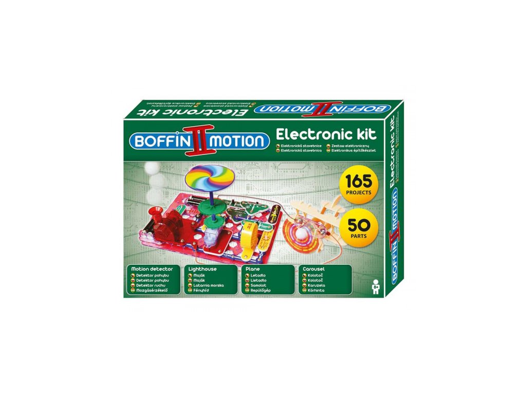 Vše se dozvíte s elektronickou stavebnicí Boffin II MOTION, která obsahuje více jak 60 součástek, z nichž lze postavit projekty: