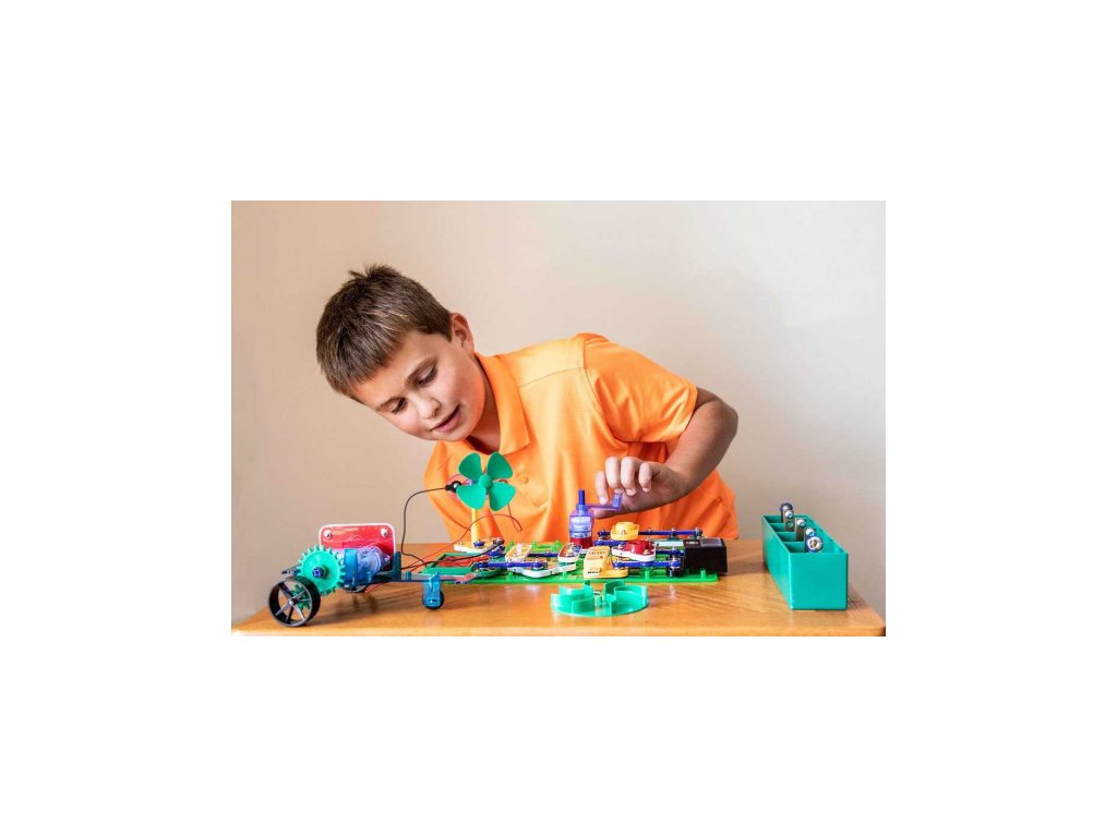 Elektronická stavebnice se 125 projekty, se kterou si sestavíte hybridní motor, dynamo, hodiny, vodní kolo a další projekty
