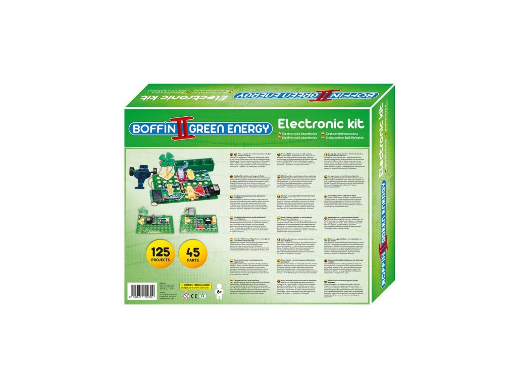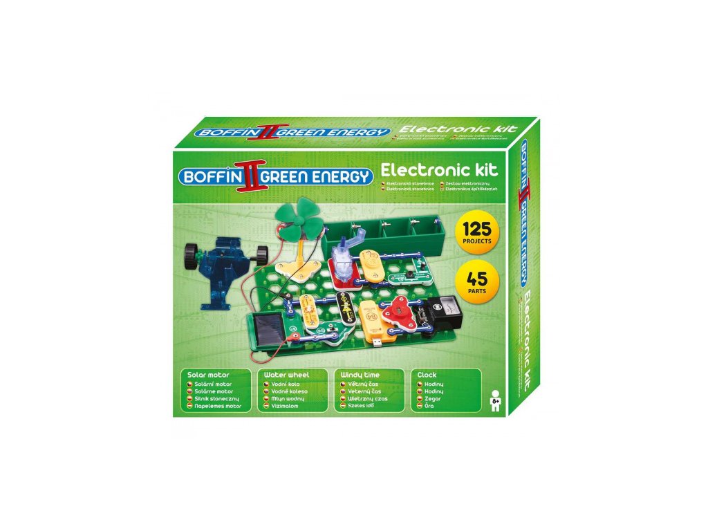 Se stavebnicí Boffin II Zelená Energie se dozvíte, jak se vytváří elektřina z vody, sestavíte si hybridní motor, zkoušečku materiálu, solární hodiny a další projekty. Stavebnice obsahuje 45 součástek, z nichž lze postavit projekty: