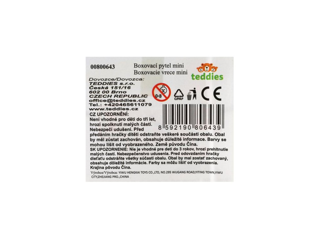 Boxovací pytel mini prstový plast 14cm 3 barvy v plastové krabičce 7,5x15x7,5cm