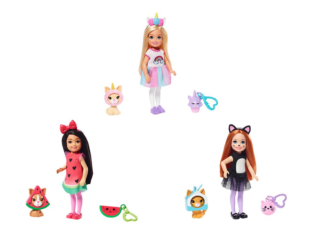 S panenkami Chelsea™ v kostýmu mohou děti povolit uzdu fantazii a vyprávět spoustu úžasných příběhů! Tyto rozkošné panenky jsou oblečeny do kostýmů s motivy oblíbených zvířátek, pamlsků a dalších. Každá z panenek má tvarovanou ozdobu hlavy, například čelenku nebo mašli, a je dodávána s převlečeným zvířecím kamarádem, který je tématicky sladěný s jejím kostýmem. Balení obsahuje také malou přívěskovou klíčenku, kterou si mohou děti snadno připnout k batohu nebo oblečení a mohou si tak vzít zábavu na cesty a sdílet ji i s kamarády! Prodávají se samostatně dle aktuální nabídky. Panenky neumí samostatně stát. Barvy a vzhled výrobku se mohou lišit. Pro děti od 3 let.