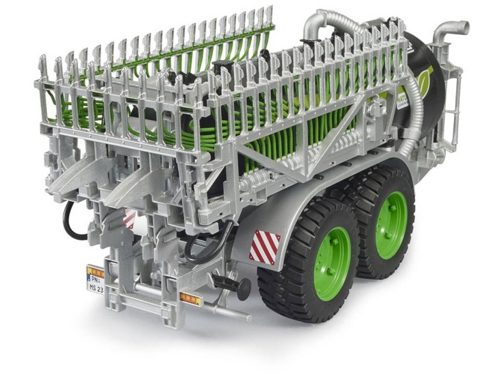 Tento detailně propracovaný model od společnosti BRUDER je vybaven rozdělovačem tažných hadic. Integrovanou nádrž lze naplnit vodou a uzavřít víčkem. Přívěs se vyprazdňuje přes výpustný ventil vzadní části přívěsu. Pro přepravu po silnici lze ramena složit a na poli znovu rozložit. Traktory BRUDER řady 3000 a 4000 jsou ideálními tahači pro tento působivý přívěs.