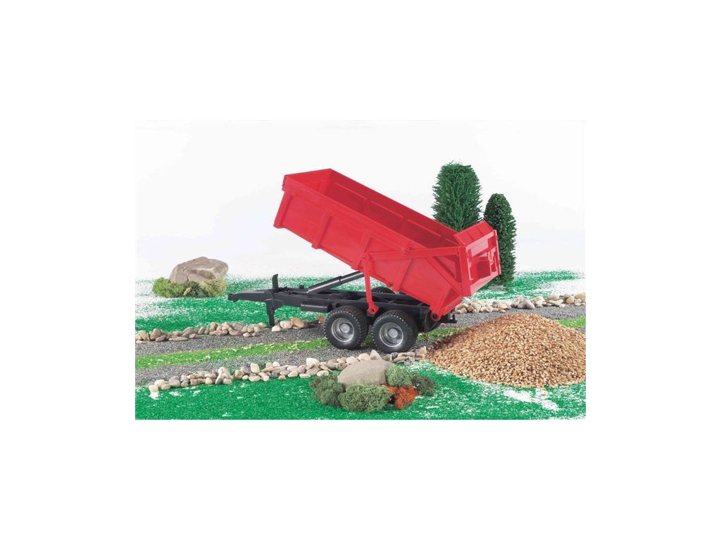 Valník určený pro použití s traktory Bruder Profi nadchne každého malého zemědělce. Tento model je vybaven vysokosklopnou korbou, jejíž zadní stěna se automaticky otevírá. Stabilitu stroji dodává sklopná