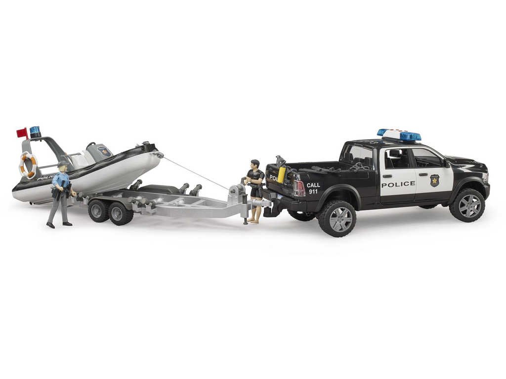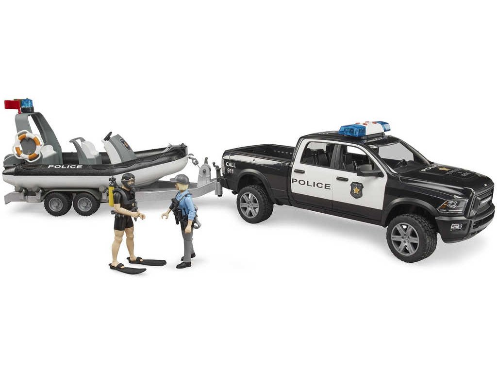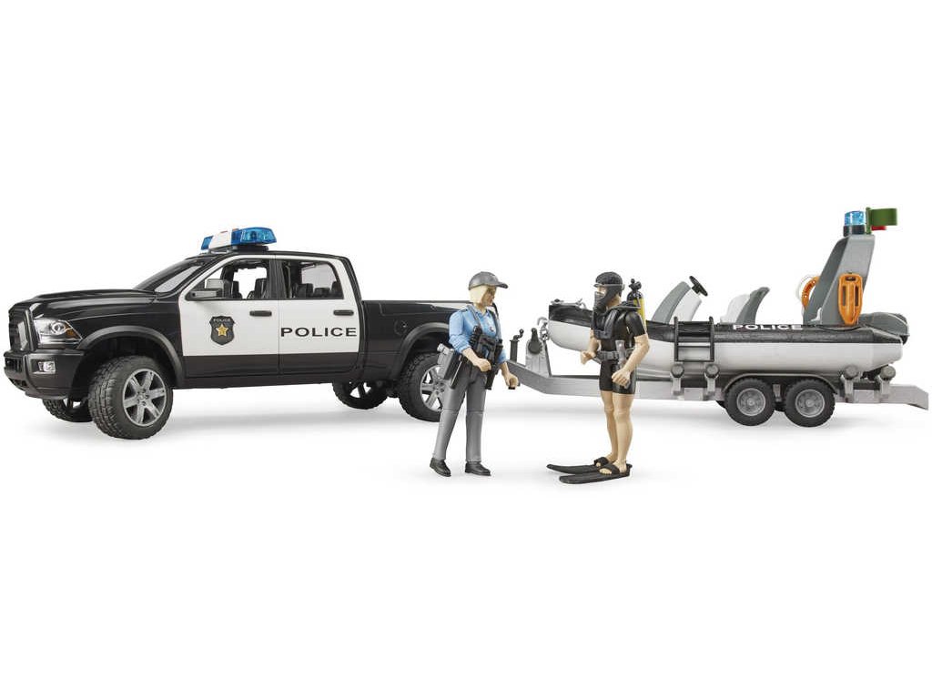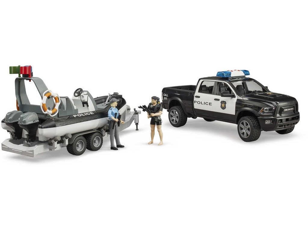 BRUDER 02507 Auto RAM Policie herní set s člunem a 2 figurkami