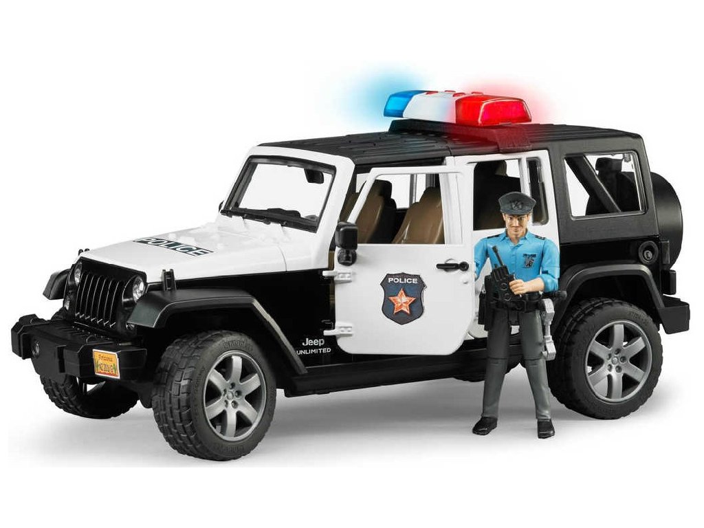 Bruder 2526 Jeep Wrangler Policie je novinkou roku 2015 v sortimentu Bruder. Jedná se o věrnou kopii opravdového Jeepu,s velmi detailně zpracovaným modelem motoru a z části zasklenou kabinou řidiče. který zvládne jakýkoliv těžký terén. Součástí balení je figurka policisty a univerzální maják se zvukem Bruder 2802. Univerzální maják se zvukem lze jednoduše připojit k autům Bruder, stiskem tlačítka zvolte odpovídající tón sirény (1. zvuk motoru, 2. policejní siréna, 3. siréna hasičů, 4. tón výstrahy)
