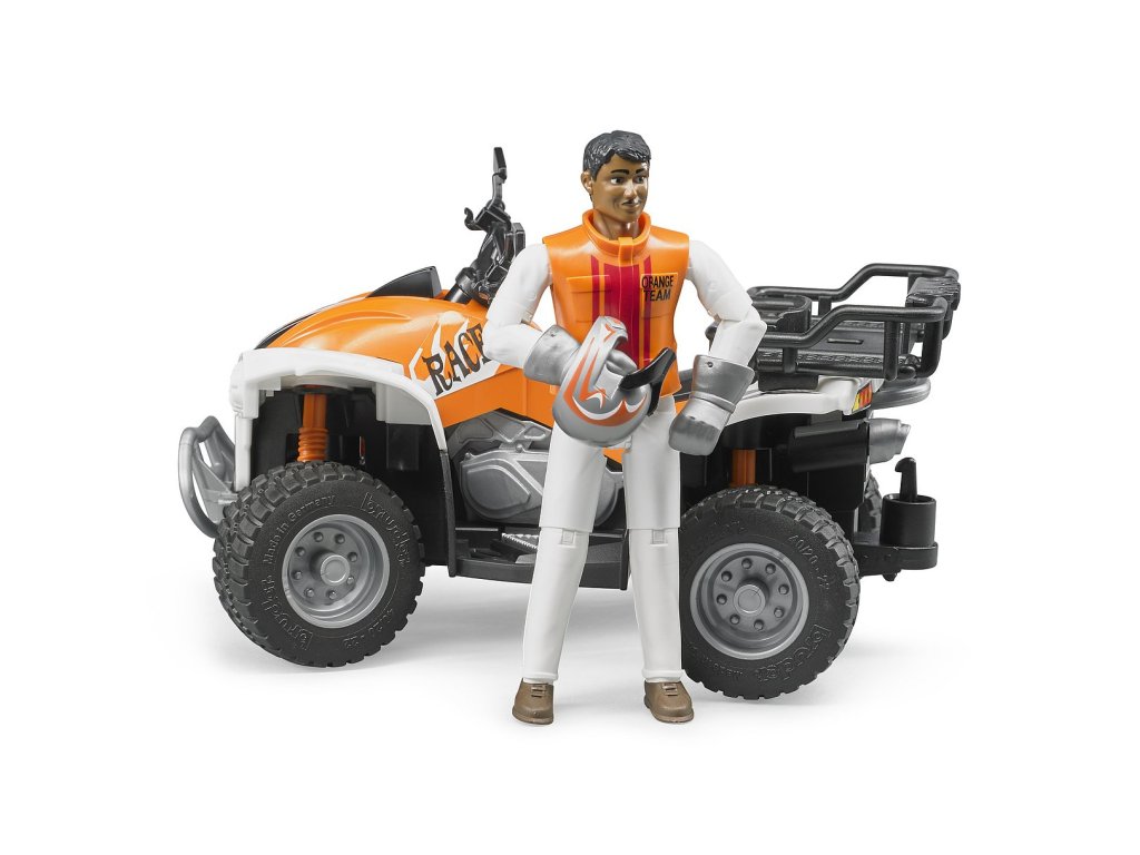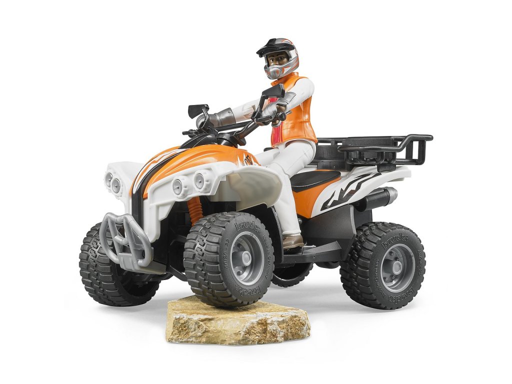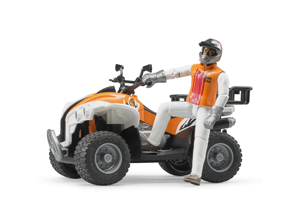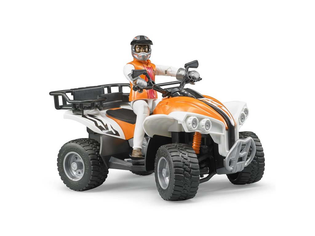 Přírůstkem do rodiny Bruder je pracovní čtyřkolka s řidičem. Čtyřkolka má pohyblivá kola, odnímatelnou část zavazadlového prostoru, odpruženou přední a zadní nápravu. Součástí čtyřkolky jsou 2 držáky pro nářadí. Vybavena je měkkými gumovými pneumatikami s běhounem. Řidič čtyřkolky má pohyblivé ruce, nohy a hlavu. Na sobě má jezdecké oblečení včetně helmy a jezdeckých bot. Model je reálnou kopií opravdové čtyřkolky. Nevhodné pro děti do 3 let. Vyrobeno v Německu, z kvalitních materiálů.Hlavní vlastnosti: pohyblivá kolaodnímatelný zavazadlový prostorodpružené nápravyfigurka s pohyblivými kloubyvyrobeno v Německu