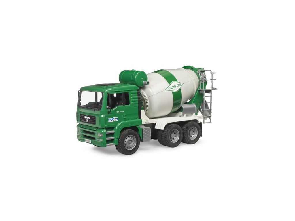 Tento domíchávač vychází jako novinka osvědčeného modelu MAN TGA. Jeho kabina se dá naklápět a umožňuje tak lepší výhled pro manipulaci. Díky otevíracím dveřím mohou do vozu nastupovat dělníci v podobě figurek Bruder. Buben míchačky je otočný a lze v něm míchat potřebný materiál. Změnou směru otáčení je možné z bubnu míchaný materiál vypustit. Šnekový dopravník na vnitřní straně bubnu dopravuje náklad do výsypného žlabu v zadní části. Hlavní vlastnosti: otevírací dveřerotační míchací buben Výsuvný skluz betonuotočný buben mixukvalitní a detailní zpracování kompatibilní s figurkami Bworldvyrobeno v Německu