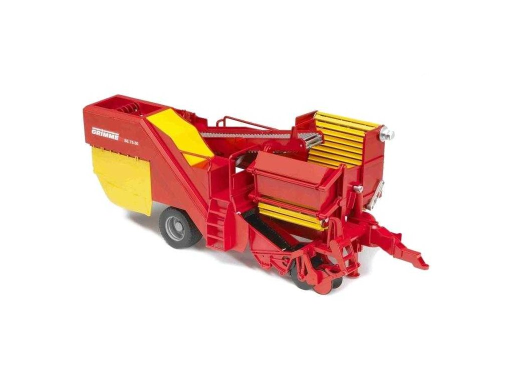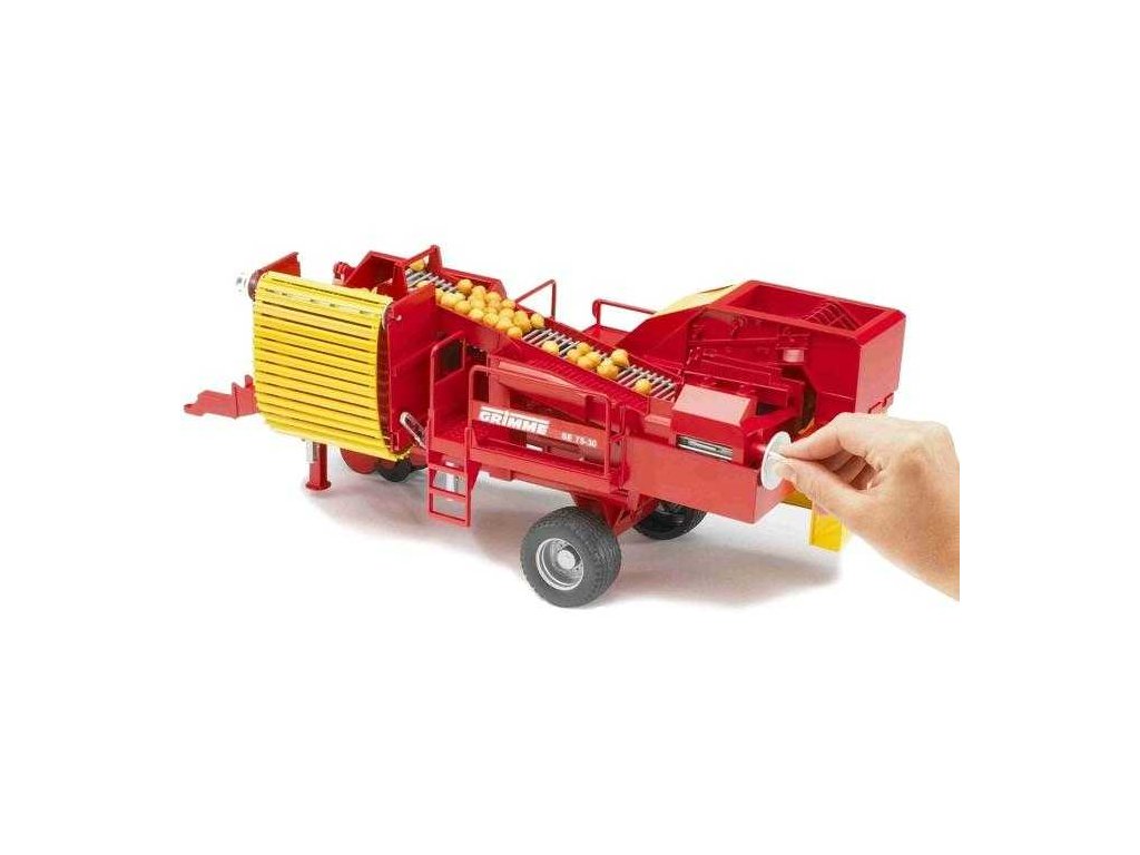 Kombajn na brambory je velký a detailně propracovaný model kombajnu. Nejdůležitější částí je přebírací pás, který se snadno ovládá pomocí ruční kličky. Z pásu jsou brambory transportovány přímo do zásobníku, který je možné dle přání nastavit. Stabilitu vozu zajišťuje sklápěcí opěrná noha, vynášecí pás je možné sklápět a kombajn má profilované pneumatiky. Lze ho připojit k libovolnému traktoru BRUDER série 20xx, 21xx a 30xx. V příslušenství nalezneme 80 ks brambor do stroje. Velikost brambor je cca 5-8 mm. Vyrobeno v Německu, z kvalitních materiálů. Hlavní vlastnosti: přebírací pás ovládaný ruční kličkousklopný páskompatibilní s traktory Bruder80 ks bramborvyrobeno v Německu