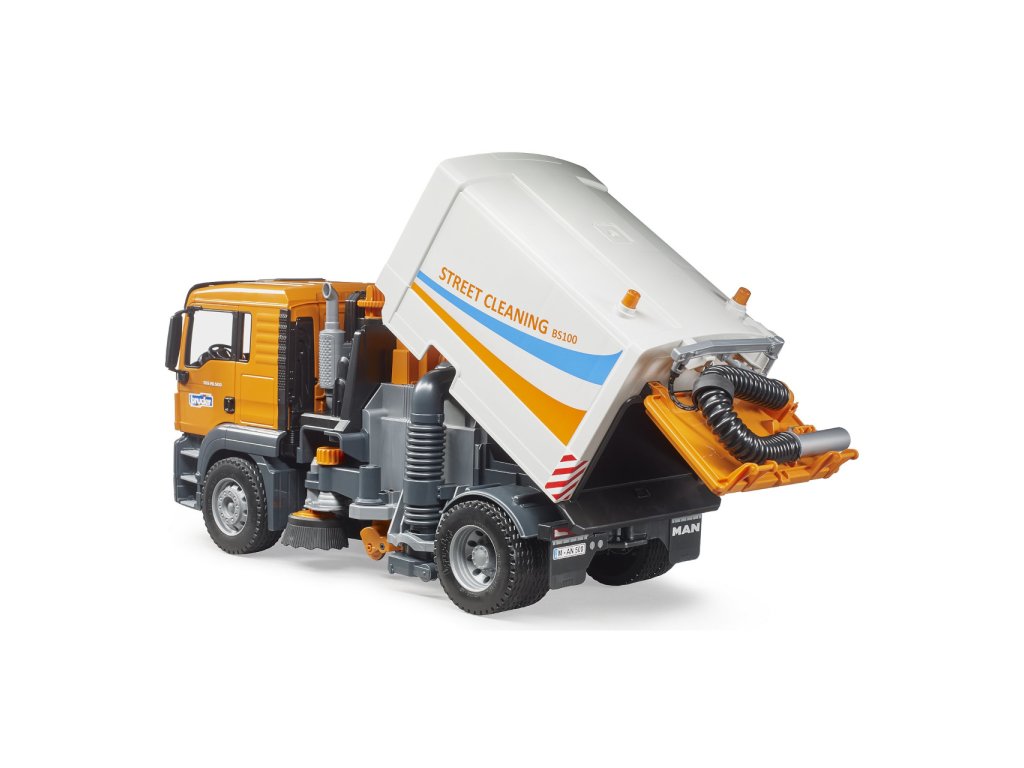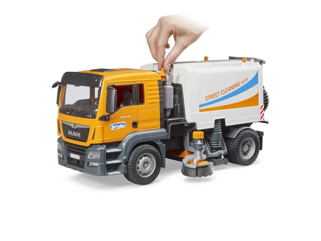 Každé místo je hezčí, pokud je uklizené. S úklidem vašeho Bruder města vám pomůže tento Bruder zametací vůz MAN TGS. Ukliďte silnice vašeho města, s tímto pomocníkem to bude hračka. Jako všechny modely Bruder je i model 3780 vybaven spoustou funkčních prvků. Dva otočné a výškově nastavitelné kartáče zvládnou úklid bez problémů a pomůže také dlouhý kartáč, který se pohybuje, když vozidlo jede. Nečistot vaše město zbavíte také díky pružnému sacímu potrubí v zadní části vozu MAN TGS Bruder 3780. Nasbíraný nepořádek vysypete snadno zvednutím výklopného kontejneru, následně se otevře zadní víko a nepořádek se vysype na určené místo. Samozřejmostí jsou sklopná zrcátka a otevírací dveře kabiny auta Bruder MAN TGS. Vyrobeno v Německu, z kvalitních materiálů. Hlavní vlastnosti: spousta funkčních prvkůdva otočné a výškově nastavitelné kartáče výklopný kontejnersklopná zrcátkaotevírací dveře kabinyvyrobeno v Německu Ocenění hračky: Top 10 Spielzeug 2020Plus X Award 2020