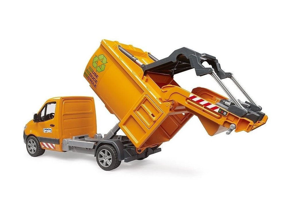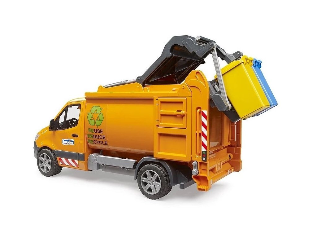 Efektivní a spolehlivý, tak Mercedes Benz popisuje nový Sprinter, který nyní přichází, aby rozšířil škálu popelářských vozů značky Bruder. Je spousta míst, kam nezajede velké popelářské auto, ale s touto novinkou, už nezůstane žádné místo bez vyvezení odpadků. Stejně jako skutečný popelářský vůz, poradí si i tento model městského popelářského vozu s malými popelnicemi či kontejnery nebo nádoby na odpadky.Na pytle na odpadky a zapomenuté odpadky jsou dvě boční klopy. K vyprázdnění popelnic nebo kontejnerů se po zvednutí popelnic za účelem vyprázdnění automaticky otevře záklopka stropního vozidla. Po vyprázdnění a spuštění popelnic se klapka opět uzavře. Vozidlo se vyprázdní odemknutím a otevřením zadních výklopných dveří a vyklopením karoserie vozidla. Hlavní vlastnosti: otevírací dveřeokna z průhledného a tvrzeného plastuvyklápěcí korbaprofilové pneumatiky2 popelnicevyrobeno z vysoce kvalitních ABS plastůkompatibilní s figurkami BWORLDvyrobeno v Německu
