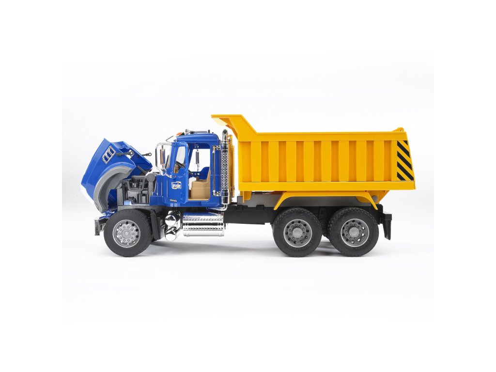 Bruder Nákladní auto MACK Granit sklápěč Model amerického vozu MACK Granite s chromovými doplňky má sklápěcí přední kapotu s možností nahlédnutí na blok motoru, sklápěcí venkovní zrcátka, přední sklo vyrobené z vysoce odolného polykarbonátu, otevíratelné dveře. Nechybí ani zpětná zrcátka, nárazník, výfuk a světla na střeše. Sklápěcí korba je snadno ovladatelná pomocí hydrauliky a zadní stěnu je možné otevřít. Vyrobeno v Německu, z kvalitních materiálů. Hlavní vlastnosti: výklopný kryt motoru sklápěcí venkovní zrcátkaotevíratelné dveřevyrobeno v Německu