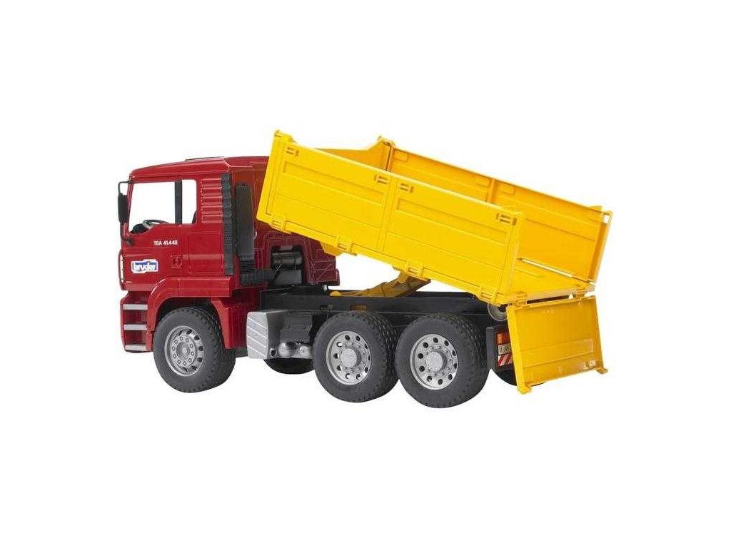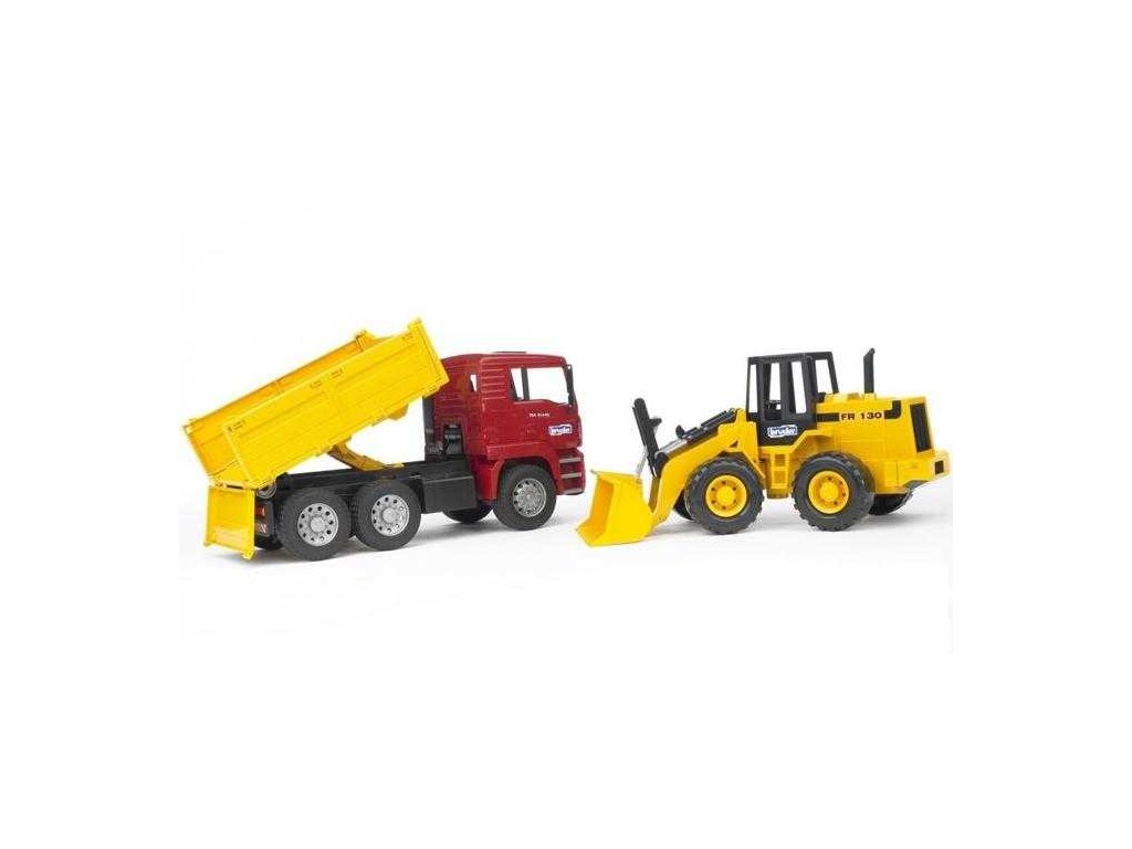 Bruder 02752 MAN sklápěč a čelní nakladač FR130 to je nákladní auto s červenou kabinou a žlutou sklápěčkou a žlutý nakladač s černou kabinou. Kabina auta je odklápěcí a sklápečka na autě plně funkční. I sklápěcí bočnice jsou funkční jako na skutečném vozidle. Čelní nakladač FR130 má pohyblivý kloub a zvedací a vyklápěcí lžíci. Vyrobeno v Německu, z kvalitních materiálů. Hlavní vlastnosti: sklápěč a čelní nakladačodklápěcí kabinasklápěcí bočnicepohyblivý kloub a zvedací a vyklápěcí lžíce na nakladačivyrobeno v Německu
