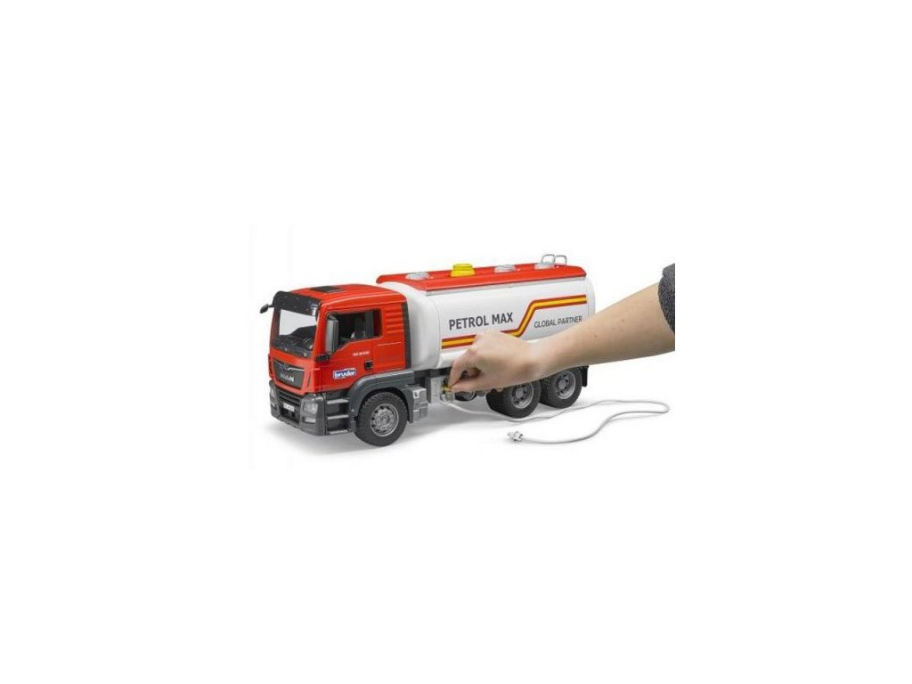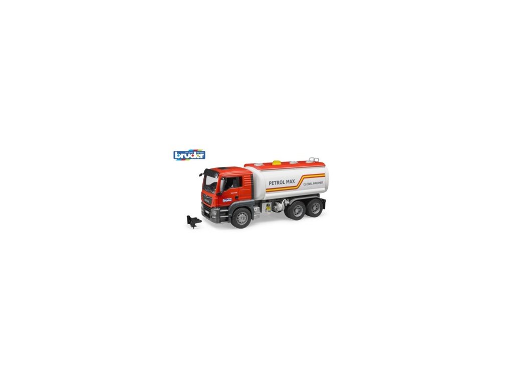 Bruder - Nákladní auto MAN TGS - cisterna Model MAN TGS je dokonalé a všestranné vozidlo. Cisterna MAN TGS disponuje funkční a moderní kabinou kam lze posait figurku řidiče. Tento model má otevírací dveře, sklopná zpětná zrcátka a nově vyvinutou a plně funkční cisternu. Nádrž pojme cca 390 ml vody. Tlak v cisterně se udržuje pomocí ručně ovládaného čerpadla stlačeného vzduchu. Vypustit vodu pak můžete ventilem s pojistnou pákou. Gumová hadice je navinutá na funkčním navijáku. Jako ideální doplněk k tomuto modelu je přívěs s cisternou. Vytvoříte tak 1m dlouhý tandem cisteren. V zadní části je umístěn žebřík, tak aby obsluha mohla kontrolovat cisternu ze shora. Auto je možné ještě doplnit světelným a zvukovým majákem. Nákladní auto má sklápěcí zpětná zrcátka, otevírací dveře, otevírací kapotu motoru, žebrík na zadní straně cisterny, funkční čerpadlo, vypouštěcí jednotku s pákou nádrže na vodu (390 ml). Hlavní vlastnosti: materiál ABS plastfunkční, moderní kabinaotevírací dveře, sklopná zpětná zrcátka, plně funkční cisternaručně ovládané čerpadlo stlačeného vzduchugumová hadice na funkčním navijákumožnost doplnit světelným a zvukovým majákemvhodné od 4 let