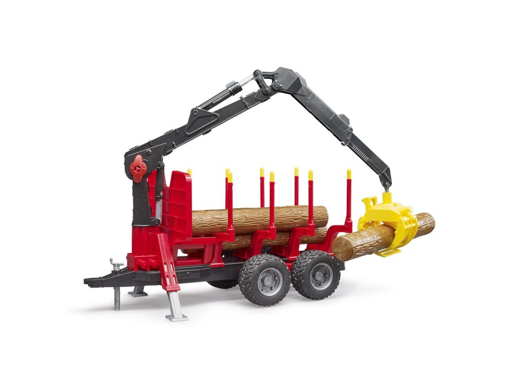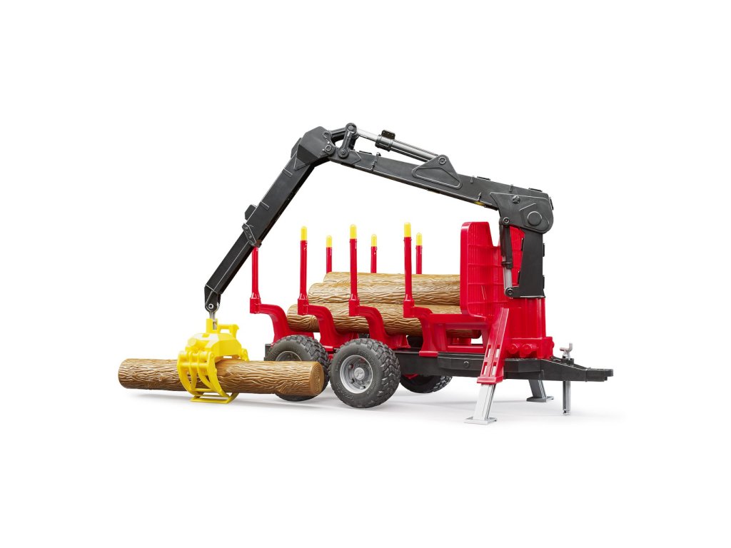 Bruder přívěs na přepravu dřeva s nakládacím ramenem má instalovaný nakladač s drapákem pro nakládání Bruder dřeva, který je otočný o 360°, posuvné klanice, kyvné nápravy pro kopírování terénu, zejména pro práci v lese. Na konci přívěsu je další závěsné zařízení pro připojení další vlečky. Součástí přívěsu jsou 4 kusy klád, lze připojit za všechny traktory BRUDER. Vyrobeno v Německu, z kvalitních materiálů.Hlavní vlastnosti: nakladač s drapákem - otočný o 360°posuvné klanice kyvné nápravy pro kopírování terénuzávěsné zařízení4 kusy kládkompatibilní s traktory Brudervyrobeno v Německu