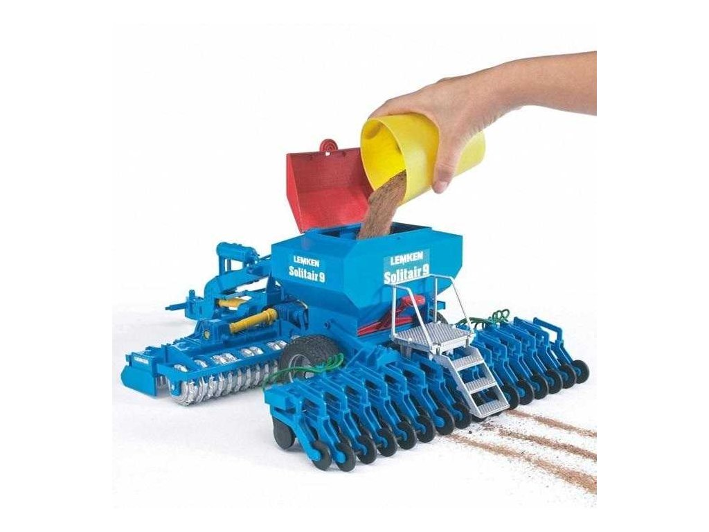 Secí stroj LEMKEN Solitair je naprosto detailně provedený stroj, který je věrnou kopií originálního stroje LEMKEN. Nabízí množství funkcí - je vybaven zásobníkem na osivo, který je možné naplnit pískem, nebo jiným sypkým materiálem a opět snadno vyprázdnit pomocí přepnutí páčky. V zadní části jsou umístěné sklápěcí schody, které umožňují přístup k zásobníku a rameno secího stroje je možné při převozu sklopit do transportní polohy. Disky na secí jednotce jsou pohyblivé a závěs je o 180° otočný. Lze připojit k traktorům série 20xx, 21xx a 30xx. Vyrobeno v Německu, z kvalitních materiálů. Hlavní vlastnosti: mnoho funkcízásobník na osivosklápěcí schodysklápěcí ramenootočný závěs o 180°kompatibilní s traktory série 20xx, 21xx a 30xxvyrobeno v Německu