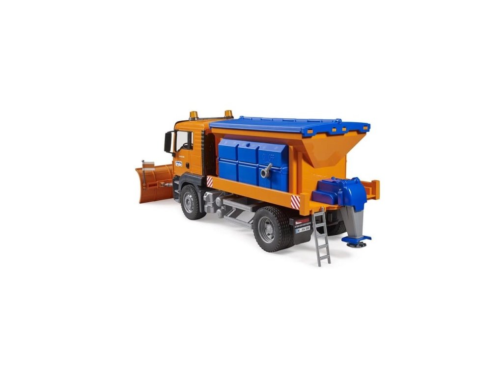 Nový sypač MAN TGS je přesnou replikou silničního vozidla, které známe všichni. Jakmile začne sněžit, jsou to právě oni, kdo se snaží zařídit, abychom se dostali co nejpohodlněji z místa na místo. Široká, výškově nastavitelná a odnímatelná radlice dokáže odklízet i ten nejhustší sníh a vytvořit tak povrch vhodný pro provoz. Mimořádně realistický posypový mechanismus nanáší na povrch vozovky písek nebo jakýkoli jiný posyp, aby se zabránilo ztrátě kontroly nad vozidly. S tímto nákladním vozem si užijete spoustu zábavy, ať už venku nebo uvnitř. Model lze doplnit o maják se světlem a sirénou. Hlavní vlastnosti: otevíratelné dveřesklápěcí zpětná zrcátkaotočný sypací mechanismusnádrž je možné naplnit vodou výsuvný žebřík kompatibilní s figurkami Bworld vyrobeno v Německu