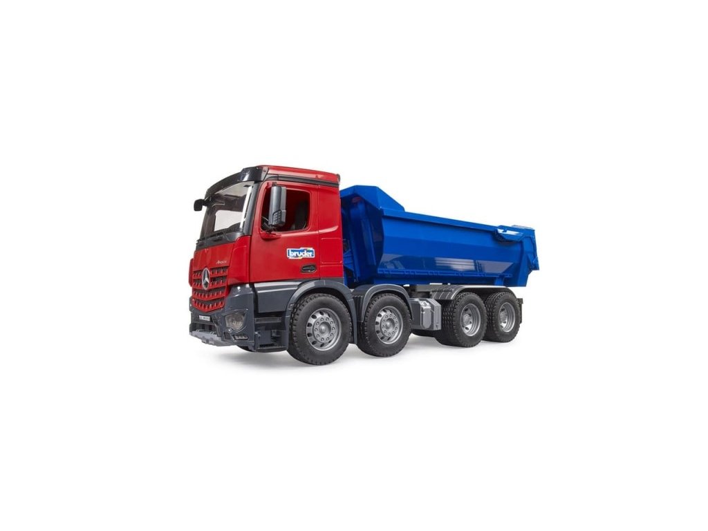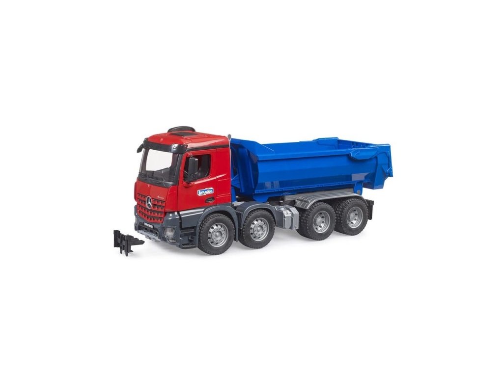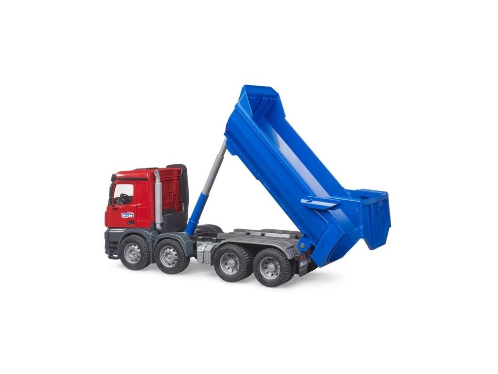 Výkon, robustnost a efektivita jsou často rozhodující při každodenní práci na silnicích a na stavbách. Sklápěč Mercedes-Benz Arocs byl proto speciálně vyvinut pro tyto potřeby. Kromě těchto technických vlastností byl také odpovídajícím způsobem upraven design. Například přední část masky chladiče je navržena v typickém vzhledu Arocs, aby vyjádřila obrovskou sílu. I u tohoto modelu byl kladen velký důraz na robustnost a kabina řidiče byla vybavena otevíratelnými dveřmi, aby dovnitř mohly vlézt figurky. Díky speciálnímu tvaru korby se naložený náklad automaticky umístí doprostřed, což je užitečné jak při jízdě, tak při co nejjednodušší vykládce. K tomuto sklápěči se obzvláště dobře hodí kolový nakladač Volvo (BR2458) nebo pásový bagr Caterpillar (BR2483). Hlavní vlastnosti: vyklápěcí korba sklopná zrcátkaotevírací dveřekvalitní a detailní zpracování kompatibilní s figurkami Bworldvyrobeno v Německuvhodné od 3 let
