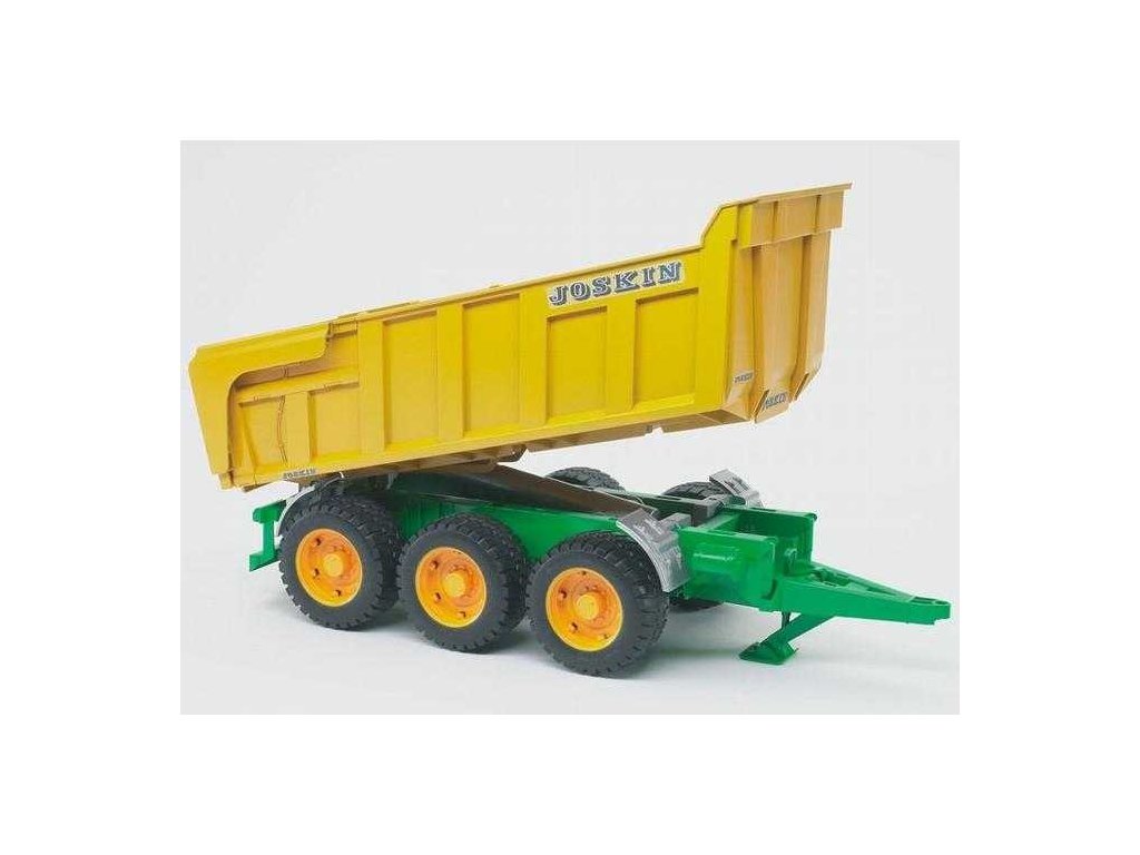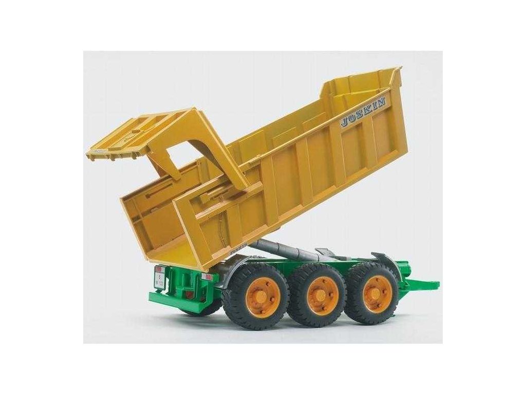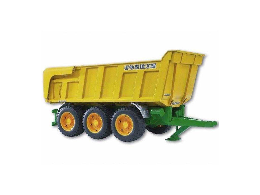 Přívěs JOSKIN je třínápravový vůz, který se pyšní belgickou značkou JOSKIN. Patří k největším a nejmohutnějším návěsům ve své řadě. Je vybaven sklápěcí opěrnou nohou, má vysokosklopnou a polohovatelnou vanovou korbu, která se ovládá pomocí teleskopického ramene. V průběhu sklápění se automaticky otevřou zadní vrata, která jdou zablokovat v jakékoli pozici. Lze připojit ke všem traktorům série 20xx, 21xx, 30xx a k unimogům. Vyrobeno v Německu, z kvalitních materiálů.Hlavní vlastnosti: třínápravový vůzsklápěcí opěrná nohapolohovatelná korbateleskopické ramenokompatibilní s Bruder unimogy a traktory série 20xx, 21xx, 30xxvyrobeno v Německu