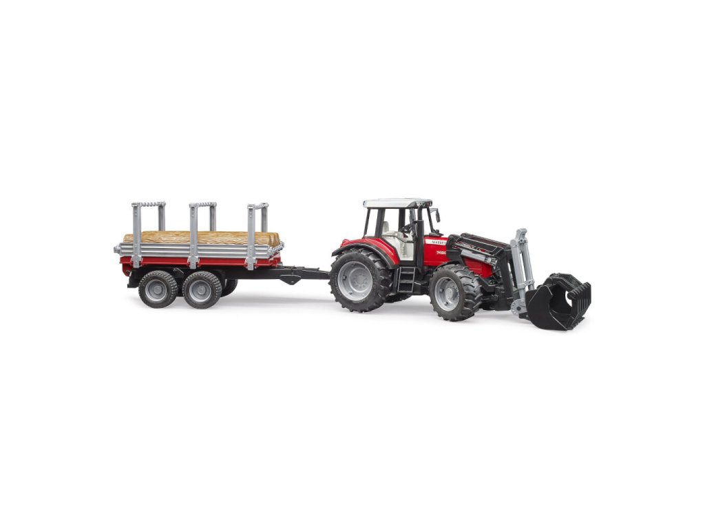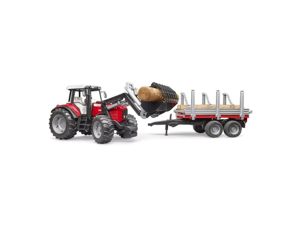 Bruder Traktor Massey Ferguson 7480 s čelním nakladačem a přepravníkem klád