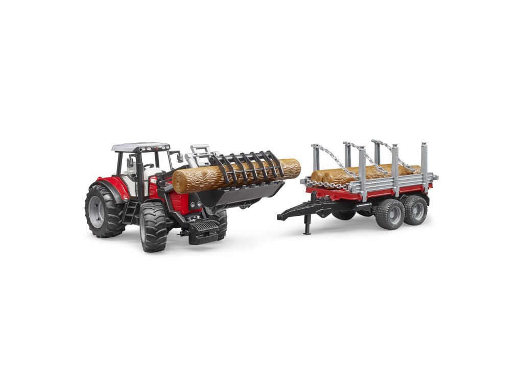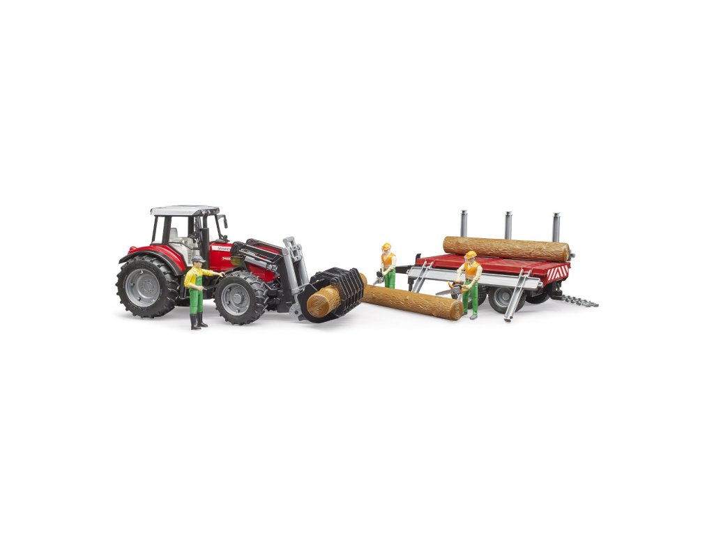 Bruder Traktor Massey Ferguson 7480 s čelním nakladačem a přepravníkem klád
