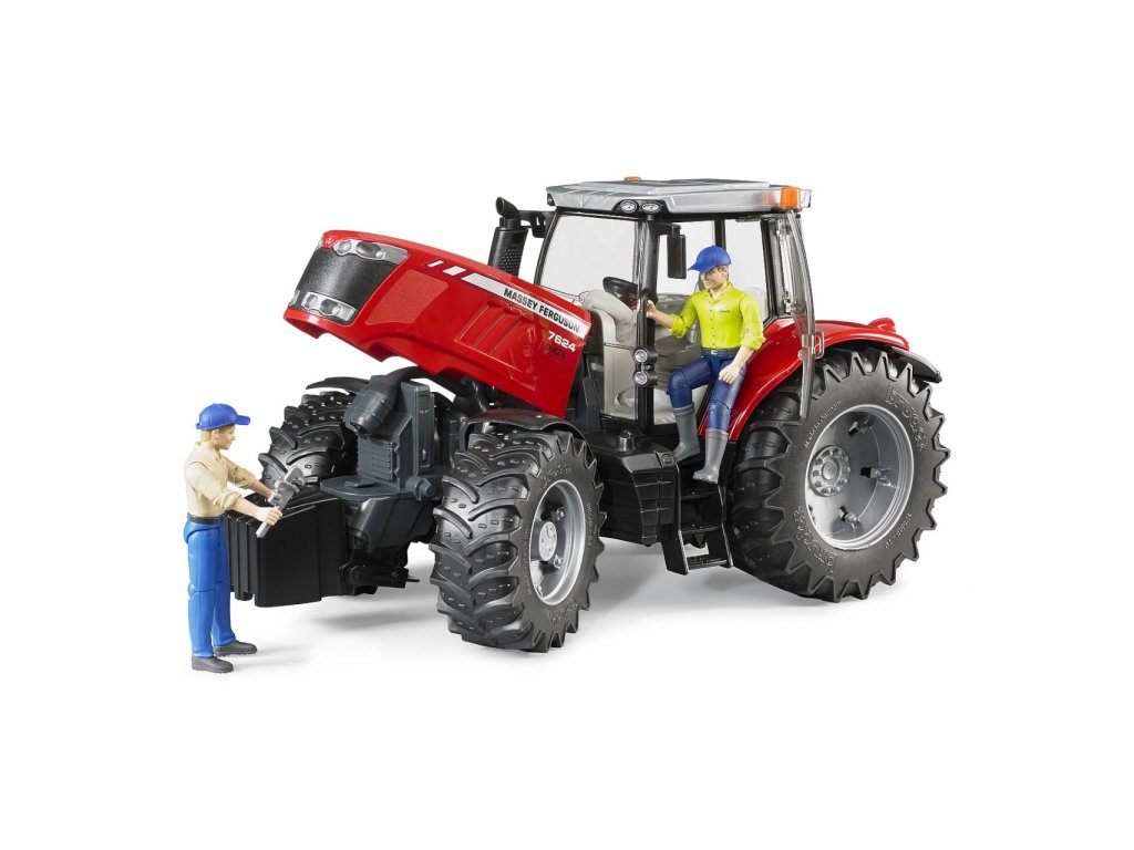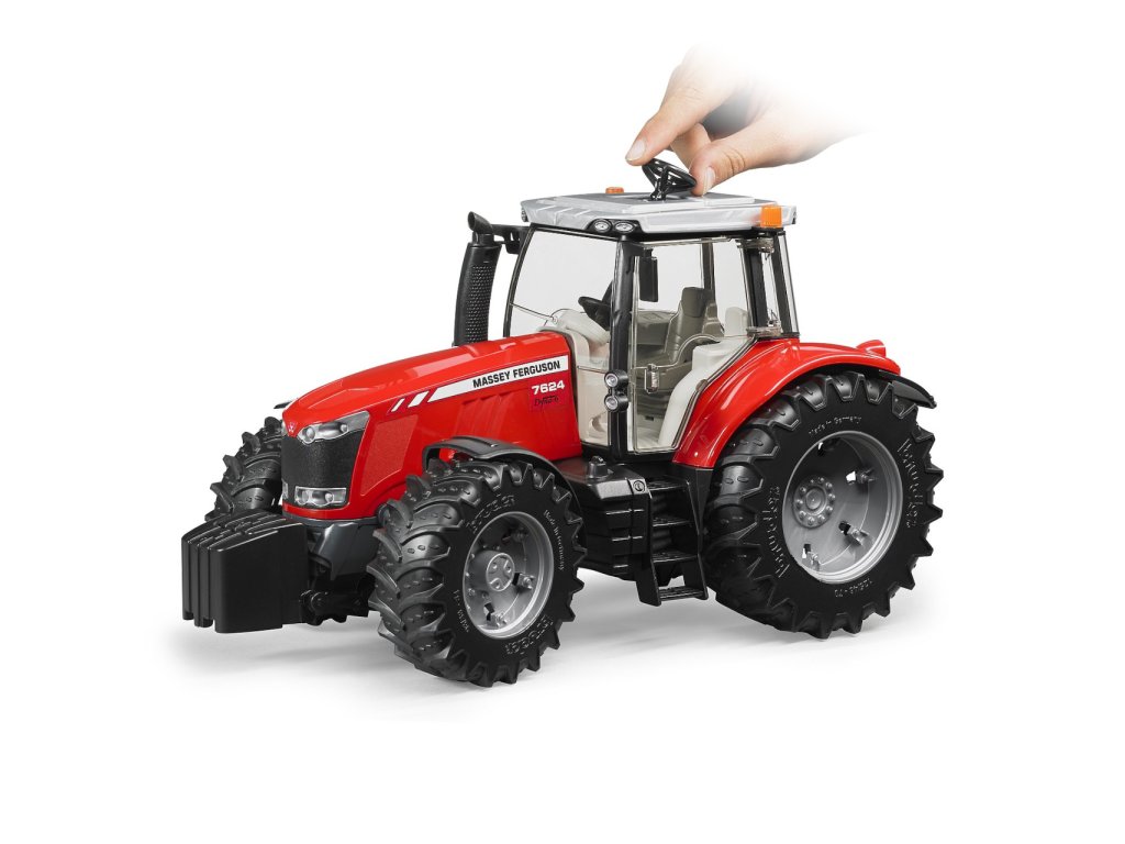 Bruder Traktor MASSEY FERGUSON 7624Bruder traktor MASSEY FERGUSON 7624 je věrný model skutečného zemědělského stroje, vyrobený z kvalitního odolného plastu. Model má odklápěcí kryt motoru, otevírací dvířka, zasklenou kabinu, výškově nastavitelné závěsné zařízení, funkční řízení - součástí je druhý volant s delším ramenem, který se zasune výsuvným otvorem ve střeše do stávajícího volantu a tím velmi usnadňuje ovládání stroje. K traktoru lze přidat mnoho doplňků, přívěsů a vleků, které se dají připojit díky výškově nastavitelnému závěsnému zařízení. Rozšíří tak funkčnost traktoru a u dětí rozvíjí kreativitu. Vyrobeno v Německu, z kvalitních materiálů. Hlavní vlastnosti: odklápěcí kryt motoruotevírací dvířkazasklená kabina výškově nastavitelné závěsné zařízenídruhý volant pro snadnější řízenívyrobeno v Německu