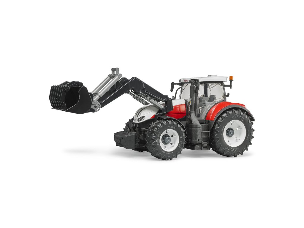 Steyr Terrus CVT je nový model rakouského výrobce traktorů Steyr. Stejně jako originál je tento model věrnou kopií. Traktor má prosklenou kabinu s otevíratelnými dveřmi. Kapota jde vyklopit a umožní pohled na velký motor. Odpružená náprava s prodlouženým volantem dodá traktoru výborné manévrovací schopnosti, ať už v interiéru nebo venku. Steyr Terrus má nápravy s odnímatelnými koly. Traktor je kompatibilní s Bworld, takže do kabiny jde posadit figurka řidiče. K traktoru můžete připojit i přídavná kola aby se nebořil v těžkém terénu. Vyrobeno v Německu, z kvalitních materiálů. Hlavní vlastnosti: okna z čirého a nerozbitného plastu otevírací kapota motoru otevírací dveře výškově nastavitelný závěs odnímatelná kola odnímatelný a plně funkční čelní nakladač odnímatelné čelní závaží odpružená přední náprava prodloužený volant vyrobeno v Německu