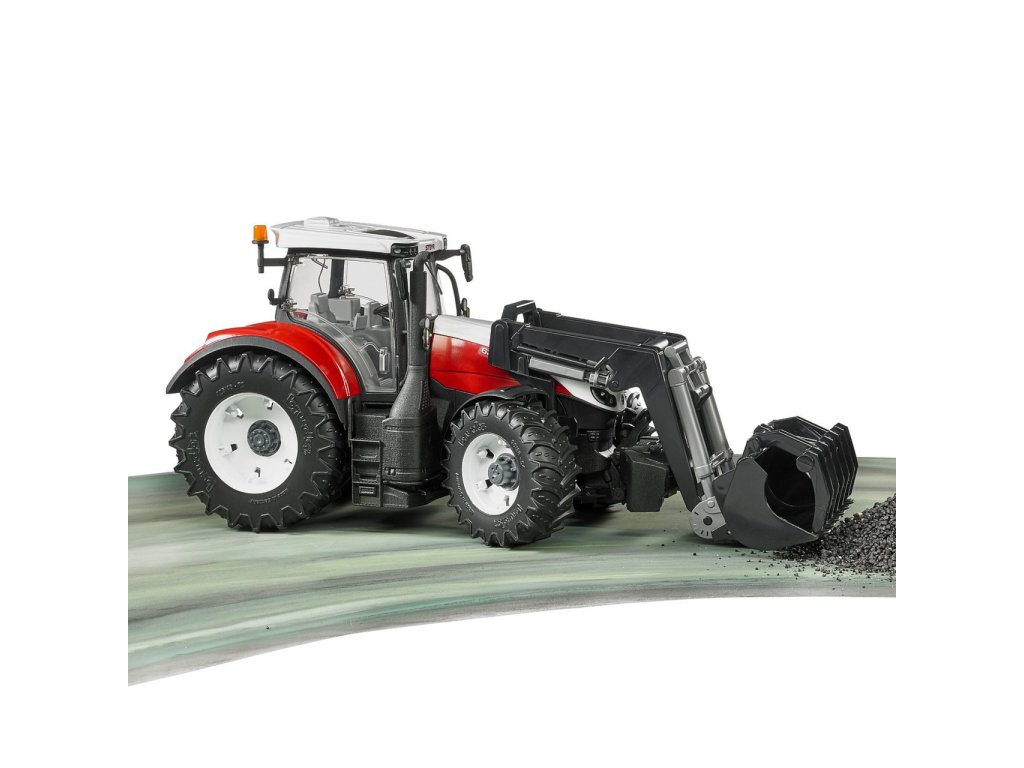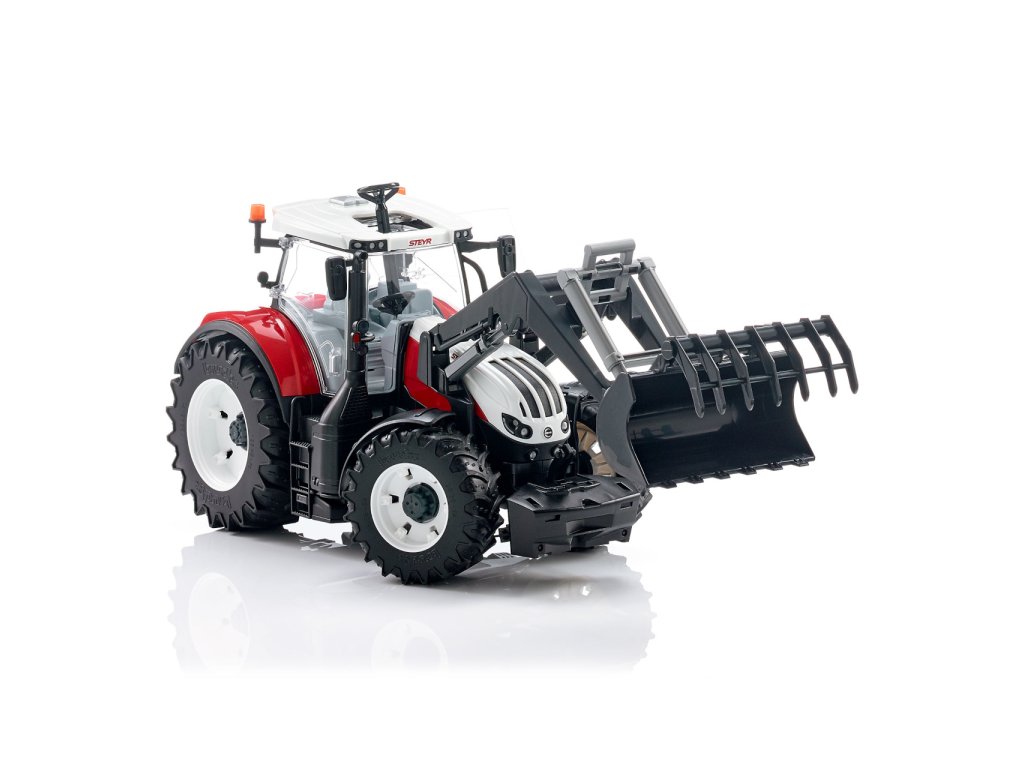 Steyr Terrus CVT je nový model rakouského výrobce traktorů Steyr. Stejně jako originál je tento model věrnou kopií. Traktor má prosklenou kabinu s otevíratelnými dveřmi. Kapota jde vyklopit a umožní pohled na velký motor. Odpružená náprava s prodlouženým volantem dodá traktoru výborné manévrovací schopnosti, ať už v interiéru nebo venku. Steyr Terrus má nápravy s odnímatelnými koly. Traktor je kompatibilní s Bworld, takže do kabiny jde posadit figurka řidiče. K traktoru můžete připojit i přídavná kola aby se nebořil v těžkém terénu. Vyrobeno v Německu, z kvalitních materiálů. Hlavní vlastnosti: okna z čirého a nerozbitného plastu otevírací kapota motoru otevírací dveře výškově nastavitelný závěs odnímatelná kola odnímatelný a plně funkční čelní nakladač odnímatelné čelní závaží odpružená přední náprava prodloužený volant vyrobeno v Německu