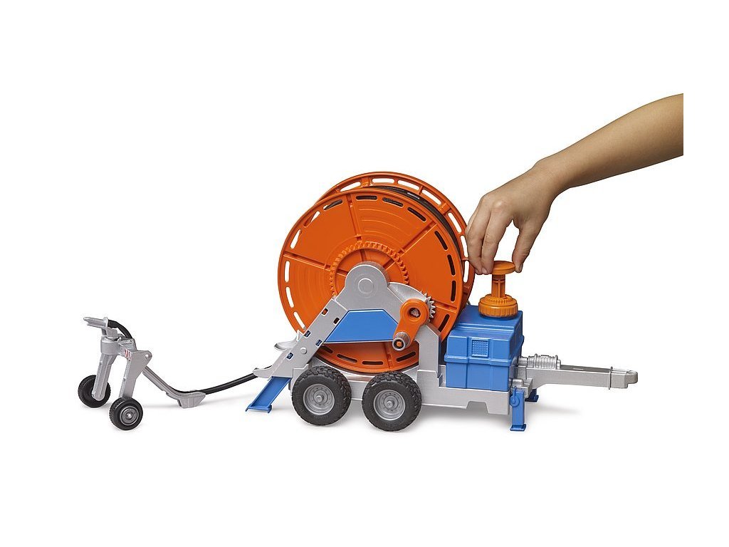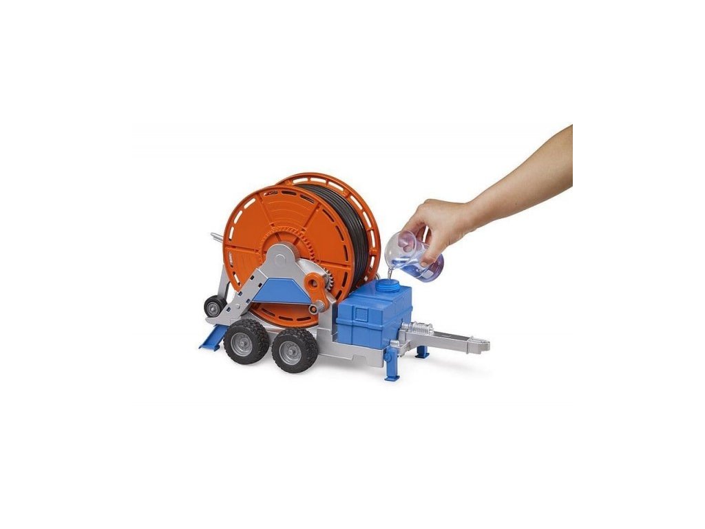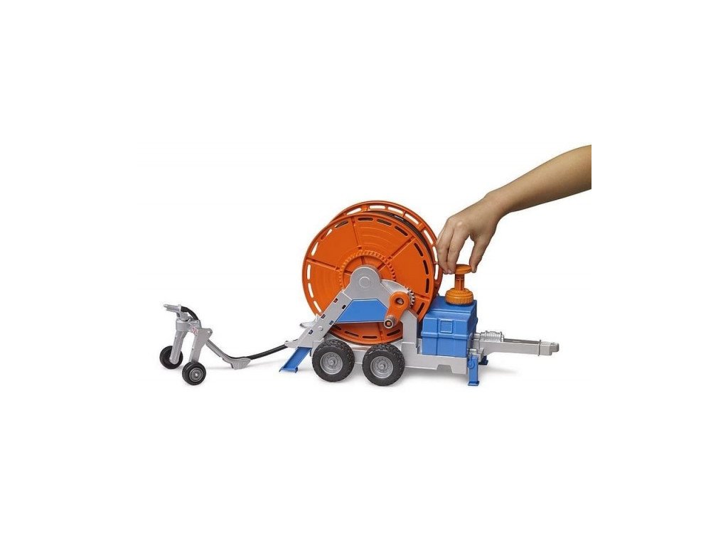 Ať už se jedná o sportovní hřiště, školky, pole, sady nebo jiné velké plochy, všude tam, kde je potřeba rovnoměrná a stálá dodávka vody, mají zavlažovače své místo. Tento důležitý stroj pro úspěšné zemědělství je nyní k dispozici. Pomocí navijáku ovládaného kličkou mohou mladí farmáři navinout na zavlačovací vůz 1,8 m dlouhou hadici, na kterou je připojen postřikovač. Součástí je i nádrž s funkčním čerpadlem. Díky systému čerpadla lze vodu rozvádět snadno a realisticky. Tento realistický zavlažovač mohou táhnout tyto traktory: 3012, 3050,3080,3120,3180, 3190, 3150, 4040, 4041, 4055. Hlavní vlastnosti: 1,8 m dlouhá hadicesoučástí je nádrž s funkčním čerpadlemvyrobeno v Německuměřítko: 1:16