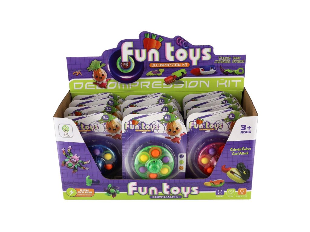 Bubble pops spinner plast 8cm 3 barvy na kartě 12 ks v boxu